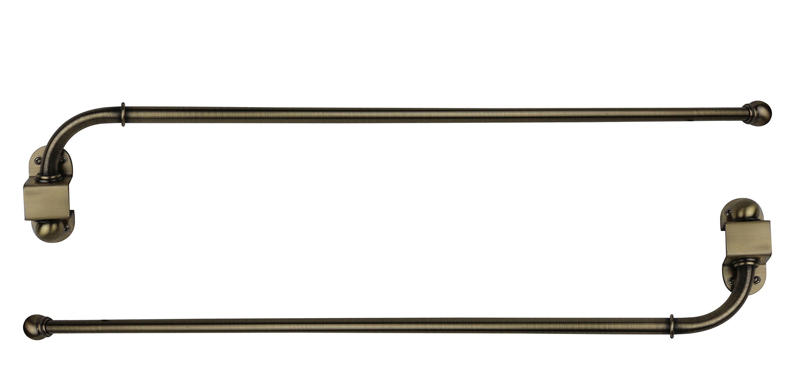 [ DECORATIVE WINDOW TREATMENT ] Classic ball finial design and elegant finishes make it simple and easy to refresh the design of any room! [ FLEXIBLE DESIGN ] Each hinged arm rotates 180 degrees individually. Use to adorn a pair of French doors or adjust the lighting of a standard window. Divide a space, organize a closet, you can even create a canopy over your bed, the possibilities for Urbanest’s adjustable swing arms are boundless. [ EASY SETUP ] Mounts curtains, Curtain rings, or Panels, easily to fit any occasion. Required mounting hardware included: Two (2) wall mounting brackets, eight (8) drywall anchors, and eight (8) screws. (2 Rods, Four (4) finials, and installation instructions are also included) [ SIZING & DIMENSIONS ] The Urbanest 1/2" Adjustable Wall Mounted Swing Arm Rod comes in two variable lengths: 14”-24” and 24”-38” *Not including the finial, measured from the tip of the rod to the end of the curve. Wall Mount 2.8” x 1.2” [ COLOR VARIETY ] Available in a variety of designer colors: Matte Black, Glossy White, Oil Rubbed Bronze (ORB), Antique Brass, Antique Gold, Brushed Steel, Pewter and Cottage. Urbanest’s Swing Arm Rods are perfect for French doors, bay windows, and sidelight windows. Mount them above inward opening doors and windows without hindering their operation. Curtains will simply swing out of the way! You can also creatively use Urbanest’s swing arms to cover doors to save energy, organize a collection of linens, or hide an unsightly alcove.