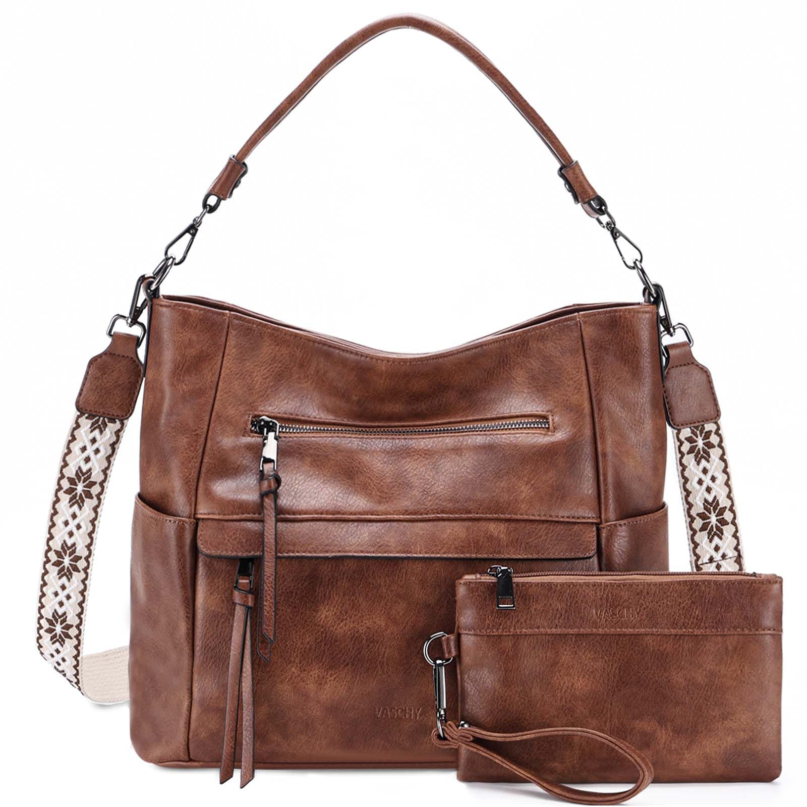 ✨Stylish and Versatile: This women’s medium hobo vegan leather handbag features a retro and classic design, making it a chic addition to any outfit. It comes with a small pouch perfect for use as a wallet or phone bag. The tote bag includes two shoulder straps—a leather strap for shoulder bag carrying and a detachable guitar shoulder strap for crossbody versatility. ✨Medium Sized Handbag: Hobo bag:13.78x5.9x11in/35x15x28cm(WxDxH),Small Pouch: 8x5.3in/20.5x13.5cm(WxH), Leather Strap Drop 12in/30cm, Adjustable Guitar Strap Length: 31-48in/78-120cm, Weight 2Lb/0.9Kg. ✨Well-Organized and Spacious: The vintage handbag offers ample storage with a main compartment secured by a zipper closure, two zippered front sleeves, two side pockets, a rear zipped pocket, and a well-organized interior including two slip pockets and a zipped pocket, ensuring all your essentials are neatly arranged. ✨High-Quality and Convenient: Crafted from high-quality vegan leather,sturdy hardware and smooth zippers, this women handbag is durable and stylish. It combines fashion with functionality, offering an extra layer of convenience to your daily routine. ✨Perfect Gift Choice: Ideal for everyday use as a work purse or travel bag, this hobo purse is a thoughtful and practical gift for ladies on special occasions. Its timeless design and functional details make it easy to match with various outfits, ensuring it will be a cherished accessory. This women’s medium hobo vegan leather handbag features a retro, classic design and comes with a small pouch perfect for use as a wallet or phone bag. It includes two shoulder straps—a leather strap for shoulder carrying and a detachable guitar strap for crossbody versatility. The bag is well-organized and spacious, with a main compartment secured by a zipper closure, two zippered front sleeves, two side pockets, a rear zipped pocket, and a well-organized interior with two slip pockets and a zipped pocket. Crafted from high-quality vegan leather, this durable and stylish handbag is ideal for everyday use as a work or travel purse and makes a perfect gift for special occasions, easily matching various outfits.