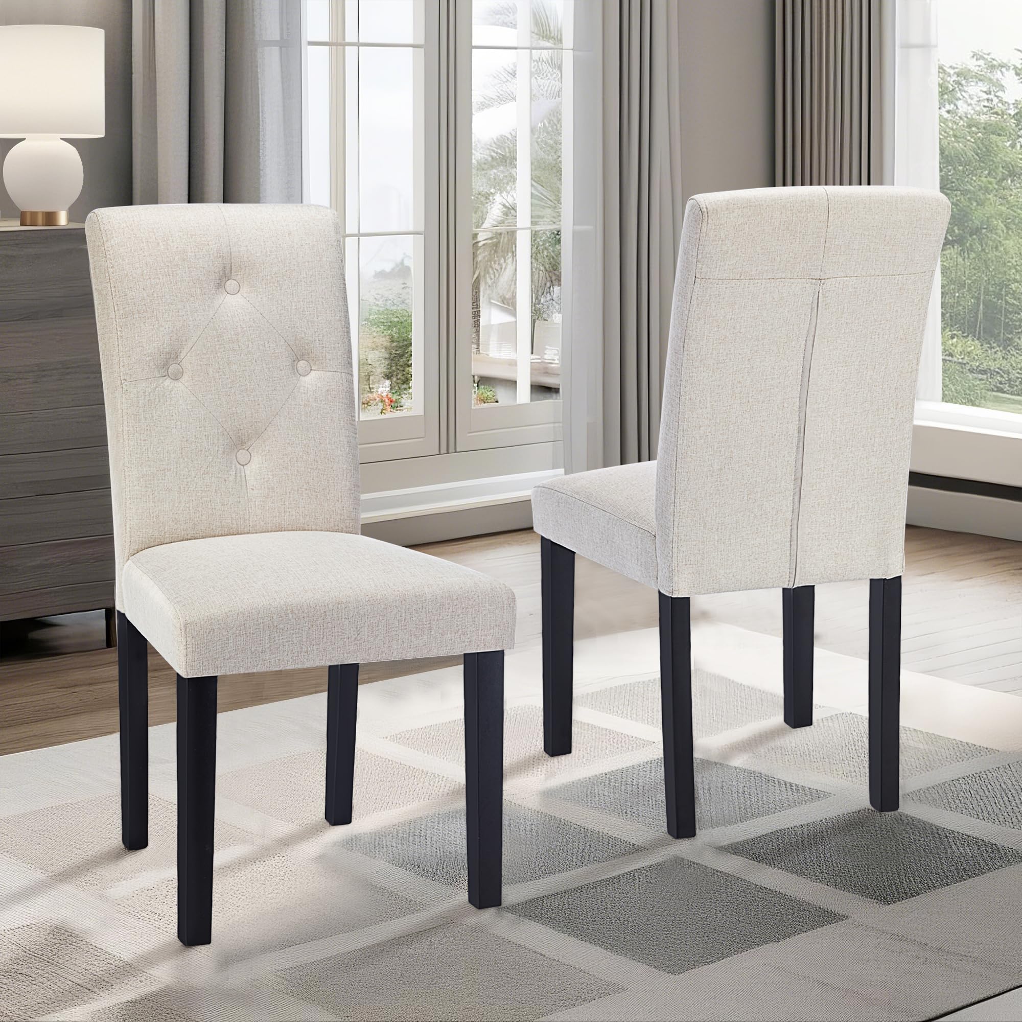 [Modern Style Dining Chairs]: This set of stylish dining chairs with modern design and in unique style make it blend seamlessly with any home decor. These beautifully upholstered chairs create a warm, elegant atmosphere for the dining room. [Ergonomic High Back Chair]: This dining chair has a high back with a curved design, which provides firm and comfortable back support for your back. The high-density sponge pad is soft and elastic for a comfortable sitting position. [Durable Linen Fabric Kitchen Chairs]: The wood kitchen dining chairs are designed with heavy-duty solid wood legs for optimum support to guarantee solidity and durability, that can hold up to 260 lbs. Non-slip foot pads of the dinning chair protect the floor from being scratched.Dining chairs are upholstered with soft linen fabric, which is breathable and easy to clean [Versatile Usage]: Upholstered dining chairs are not only suitable for everyday use in the living room, kitchen, or bedroom, but also perfect for special occasions such as weddings, ceremonies, conferences, and parties. With their elegant appearance and comfortable seating, they offer a multifunctional solution for various settings. [Easy to Assemble & After-sales Service]: This dinner chair only takes 15 minutes to assemble. Please contact us and we'll response as soon as possible within 24h