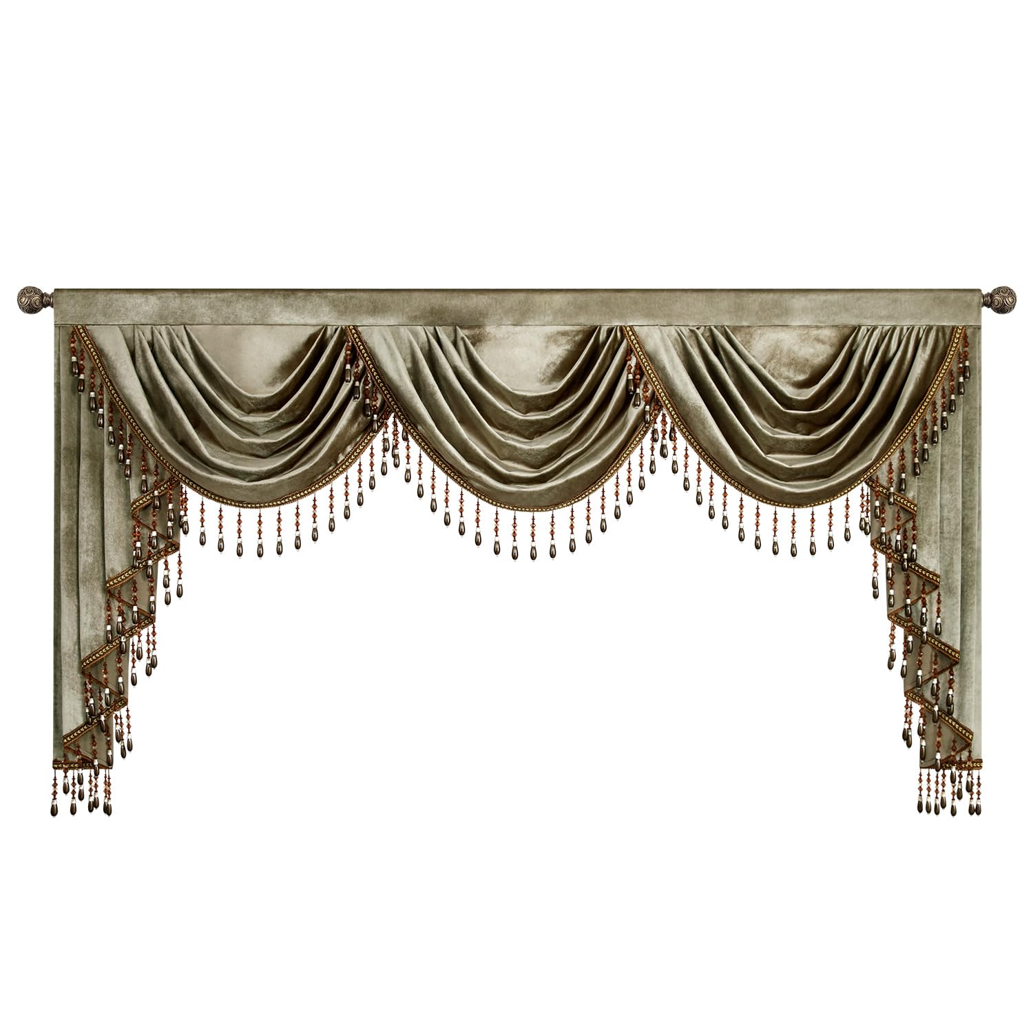 PACKAGE: This package includes one 79-inch wide single-panel velvet waterfall valance. The swag is nearly 24 inches long, while the cascade is nearly 43 inches. The top of the curtain has an extra-wide rod pocket that fits most standard rods and is easy to install MATERIAL & DESIGN: This vintage waterfall drapery is made of soft and thick velvet. Graceful lace and flexible tassels enhance the drape. Its elegant appearance transforms plain windows and elevates the room’s overall look HOME DECOR AMBIENCE: Ideal for adding a luxurious and charming vintage touch to living rooms, study spaces, libraries, or cafés. Also perfect for holiday gatherings or everyday use CARE INSTRUCTIONS: Machine-washing isn’t recommended. Instead soak the curtain in warm water with mild detergent for a few minutes, then gently squeeze out moisture. Iron on low heat if needed, and avoid harsh handling to protect lace and tassels MORE OPTIONS: Explore matching window treatments and coordinating textiles designed to complement this valance and enhance your room’s style with cohesive colors, textures, and patterns