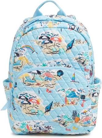 11.5" w x 14.5" h x 7.5"D Cotton Accommodates up to a 15" laptop Exterior features a front zip compartment (containing two slip pockets) and two side pockets Interior features a padded laptop sleeve Adjustable straps 32.0". Handle drop 2.5" Cotton. 11.5" w x 14.5" h x 7.5"