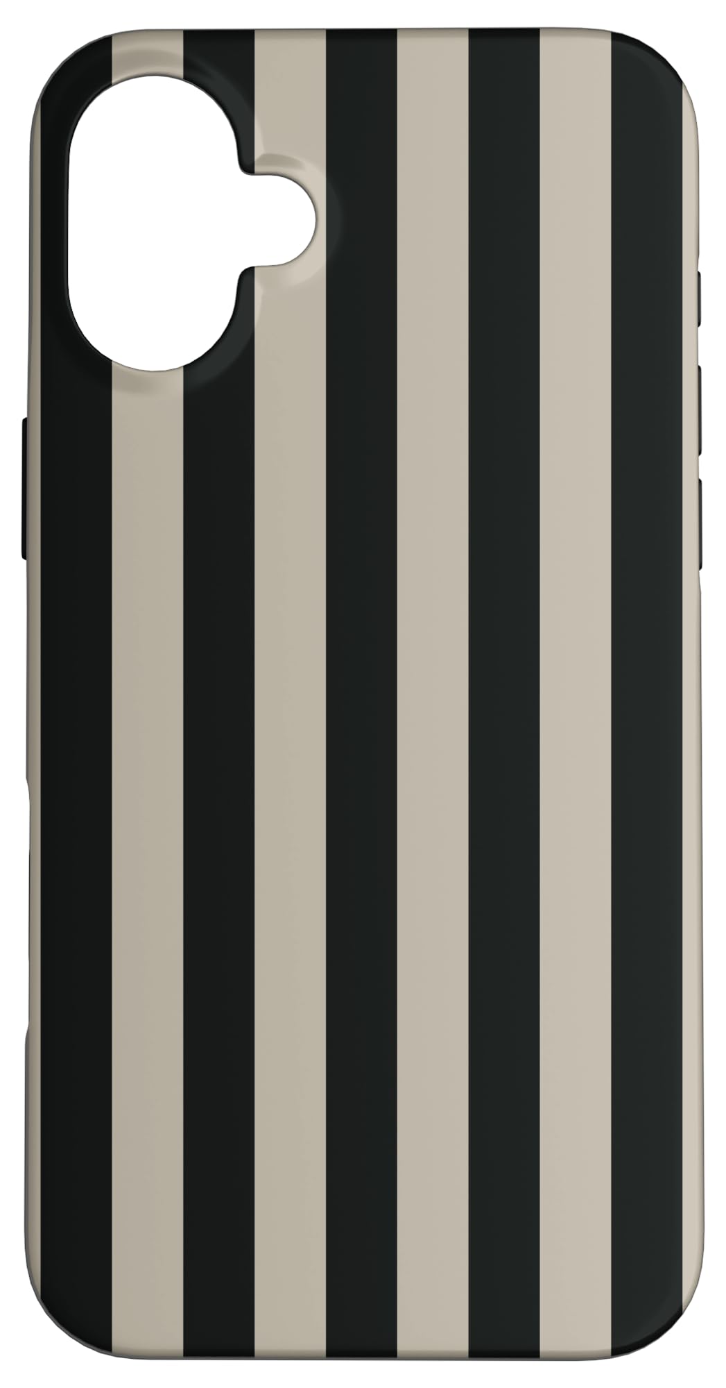 Vertical Stripes Black Beige Cream Minimal Aesthetic Cute Case for iPhone 16 Plus
