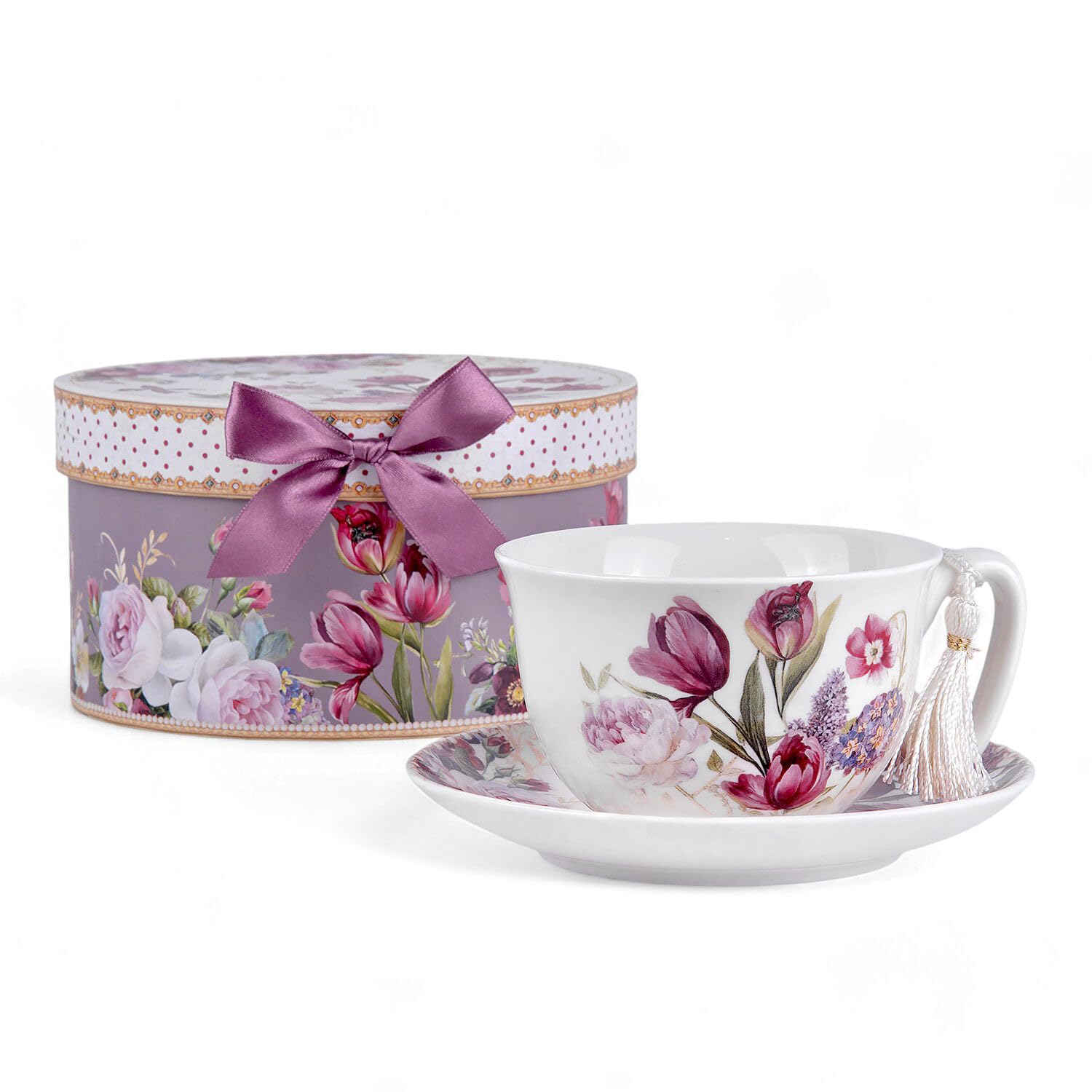 COLLECTION: TULIPY. Add a splash of color to your kitchen with these vibrant tulips. Perfect for brightening up your cooking space, these tulips bring a touch of natural beauty and elegance to any kitchen decor. SET CONTAINS: 1 Cups, 1 Saucers. SIZE: SAUSER - Diameter 5.78"(14.7cm); CUP- Width 4.1"(10.4cm), Height 2.5"(6.4cm), Capacity 8.45 fl oz.(250ml) MATERIAL: FINE BONE CHINA. Eco-friendly & Safe material. Practical qualities – The material is extra-strong to prevent scratches. The elegant lightness, sturdiness, and unusual impressive style of products make them not only beautiful but also perfectly strong for everyday use. BEAUTIFUL DESIGN & UNIQUENESS: The dazzling white background, the finest, airy material, the rich luster of the glaze, and the graceful patterns make the dishes elegant and unique GIFT BOX: This exquisite set comes in an elegant gift box, making it a perfect gift for any occasion. Share moments of joy and comfort with your loved ones with our product. Add a splash of color to your kitchen with these vibrant tulips. Perfect for brightening up your cooking space, these tulips bring a touch of natural beauty and elegance to any kitchen decor. Bone China stands out due to the following: Beautiful design & Uniqueness – The blindingly-white background, the finest, airy material, the rich luster of glaze, the elegant patterns make bone china look elegant and unique. Eco-friendly & Safe material – Made of high-grade bone china. Practical qualities – The material is extra-strong to prevent scratches. The elegant lightness, sturdiness, and unusual impressive style of products make them not only beautiful but also perfectly strong for everyday use. This exquisite set comes in an elegant gift box, making it a perfect gift for any occasion. Share moments of joy and comfort with your loved ones with our "Tulip" Teapot, Cup and Saucer