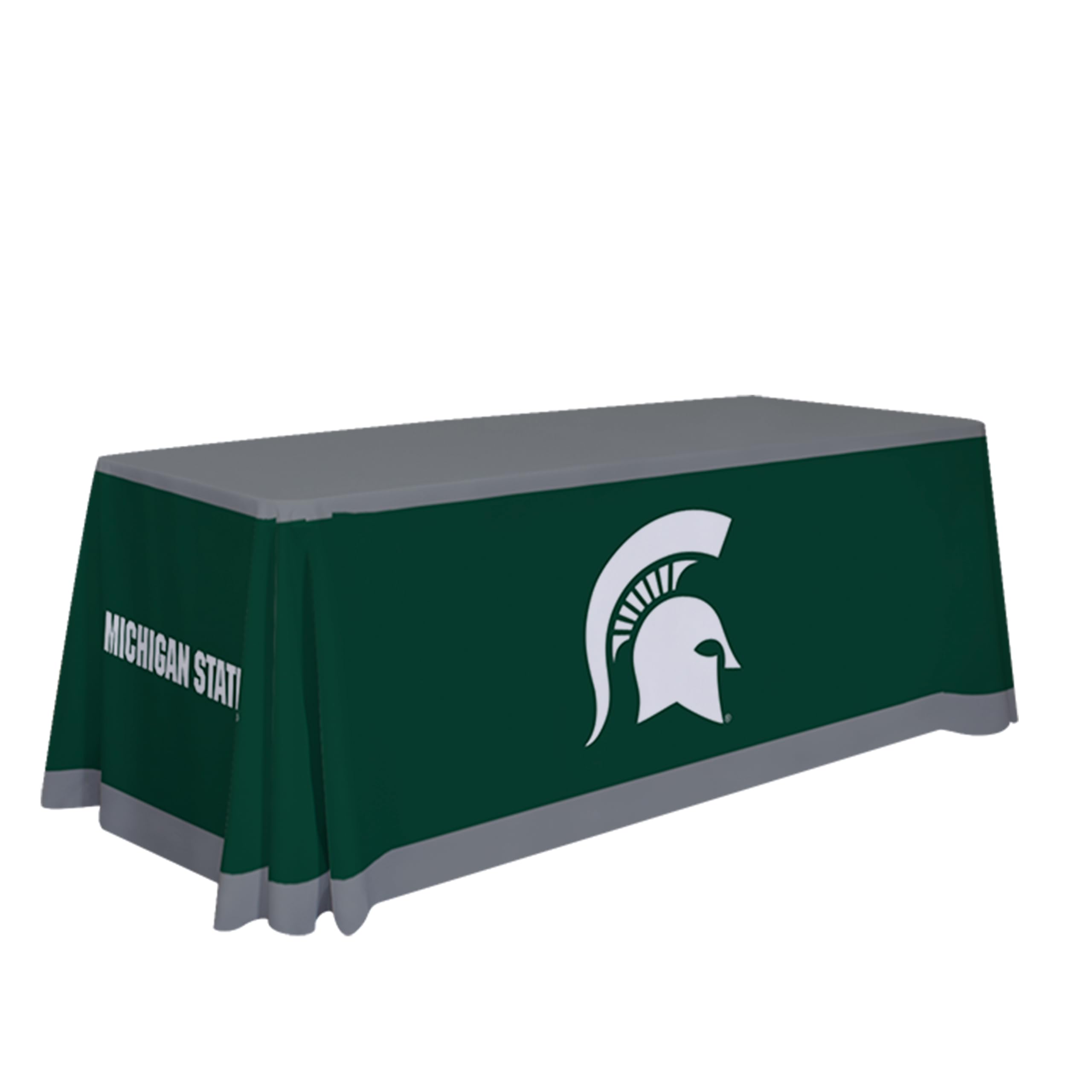 SHOW YOUR TEAM PRIDE - Show off your school spirit with this vibrant table throw. Whether you're a die-hard fan or proud alumnus, this tablecloth is a must for game day parties and tailgates—perfect for a die-hard fan's college collection. BUILT TO LAST - Crafted from durable polyester fabric that resists fading and tearing, this table throw is designed to be used consistently. This will stay looking sharp season after season, the ultimate sports fan decor. EASY TO DISPLAY - With four sides of coverage, the Michigan State Spartans table throw fits 6 foot tables. No matter what side of the table you see, you’re team pride will be on full display. WELCOME WITH TEAM SPIRIT - Celebrate team spirit! Our tablecloth proudly adorns tables that you have on display at your tailgate party or your home. Showcase your allegiance in vivid colors and premium quality, perfect for a true fan! NCAA LICENSED - This throw is machine washable and designed to be used at your favoite event. Officially NCAA licensed and University, College or School approved. Vibrant Colors, Durable ConstructionProudly display your Michigan State Spartans pride with this vibrant 6' Draped Printed Table Throw from Victory Corps. The vivid printing ensures NCAA licensed artwork retains its official hues. The tablecloth covers all 4 sides of the table making it an ideal product for game days or everyday display.Versatile UsesWhether you're decking out your tailgate party or home, this table cloth is the perfect focal point to show off your spirit. It’s wrinkle resistant making it ideal to pack away and reuse while maintaining bold, eye-catching punch that showcases your unwavering team pride.Uncompromising Quality, Unbeatable SpiritThe premium table throw combines uncompromising quality with your college school pride. Whether you're hosting a watch party or tailgating, this throw ensures your allegiance is on full display.br>Made of durable material, this throw is ideal for indoor use but can absolutely shine outdoors for short periods of time if the weather is mild.)