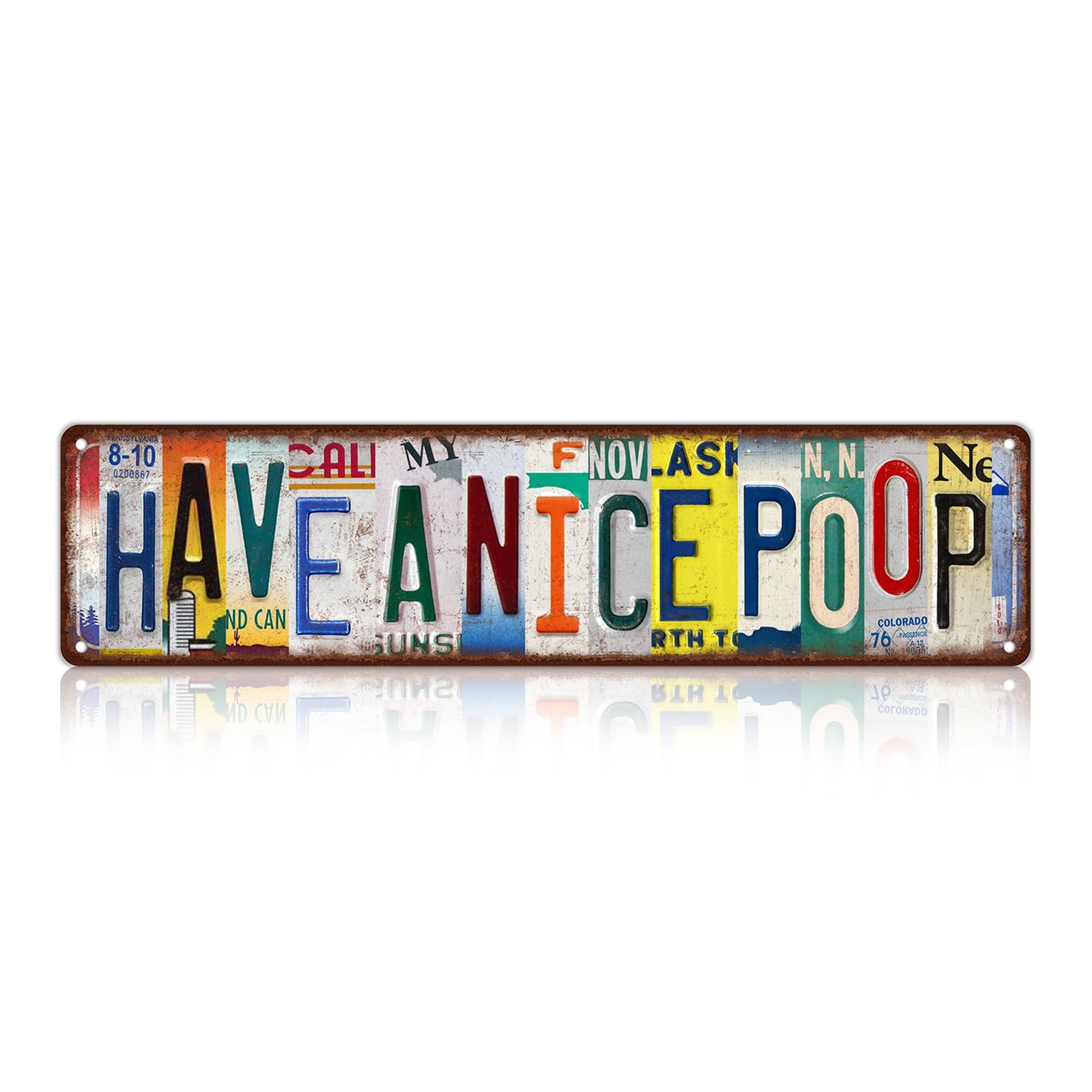 Perfect size: 4x16 inches (10x40 cm). This vintage decorative sign will fill your room with a unique atmosphere and you will surely receive many compliments. High quality: This vintage tin sign is made of high-quality aluminum with safe rolled edges. It uses UV-resistant fading ink, is waterproof, and suitable for both indoor and outdoor use. Rich color printing provides high contrast, ensuring your decorative sign stands out. Personalize ur place: This vintage sign can be used in various scenarios, as a vintage garage metal sign wall decoration, or as a bar sign for your home bar. It can even be used as a bar decoration and beer accessory for a men's lounge. Easy to install: All our vintage home signs have 4 pre-drilled holes. You can hang this metal decorative sign on the wall or fix it with nails, or place it on your countertop as a decoration. It will be a very attractive decoration and also a unique gift. Great service: If you have any questions about our products, please feel free to contact us and we will be happy to assist you, including return matters. Vintage Have a Nice Poop Wall Decor Bathroom Street Signs Metal Tin Signs 16 x 4 Inches