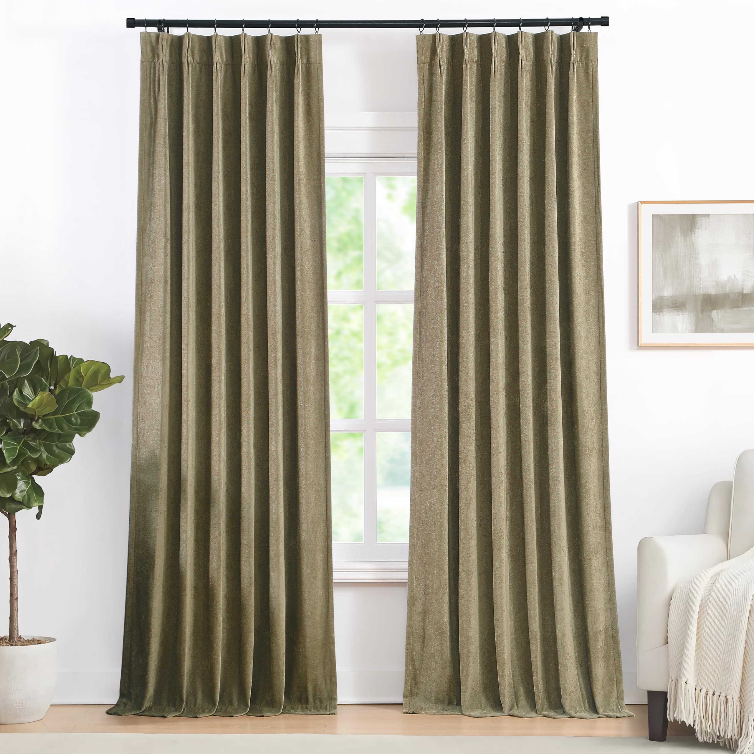 Ready Made:Each package includes 2 panels of pinch pleat chenille curtains with 16 hooks(without rings),measuring 36"Wx108"L each panel,72"Wx108"L in total. 100 Percent Blackout:Sewn with blackout coated lining,room darkening curtains can block out sunlight,uv rays effectively and provide thermal insulation,noise reduction and total privacy protection,which is a perfect choice for baby,night shifter,and people who are sensitive to the light. Decorative Pinch Pleat Style: Each mink chocolate curtain panel with 6 pinch pleats generates modern and luxury feel. Hanging these pinch pleat curtains to elevate your windows and increase the aesthetic value to any spaces,bedroom,living room,nursery,office,etc. Multiple Hanging Ways:The luxury curtain has 3 hanging options to meet your different home décor needs:back tabs(4 inch),clip rings or ring hooks.Please note that 16 hooks are in the package but clips and rings are not included.Two weighted hems sewn at bottem increase the draping effect. Easy Care:Curtains are machine washable in cold.Gentle cycle and do not bleach.Tumble dry low and iron on lowest setting as needed. Customized sizes are available upon request.If there are any problems with curtains,please feel free to contact us. Vision Home Pinch Pleated Curtains