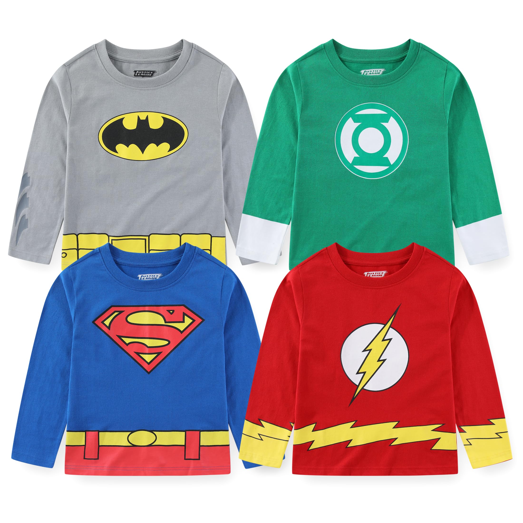 WARNER BROS Justice League Boys 4 Pack Long Sleeve Shirt for Toddler and Big Kids