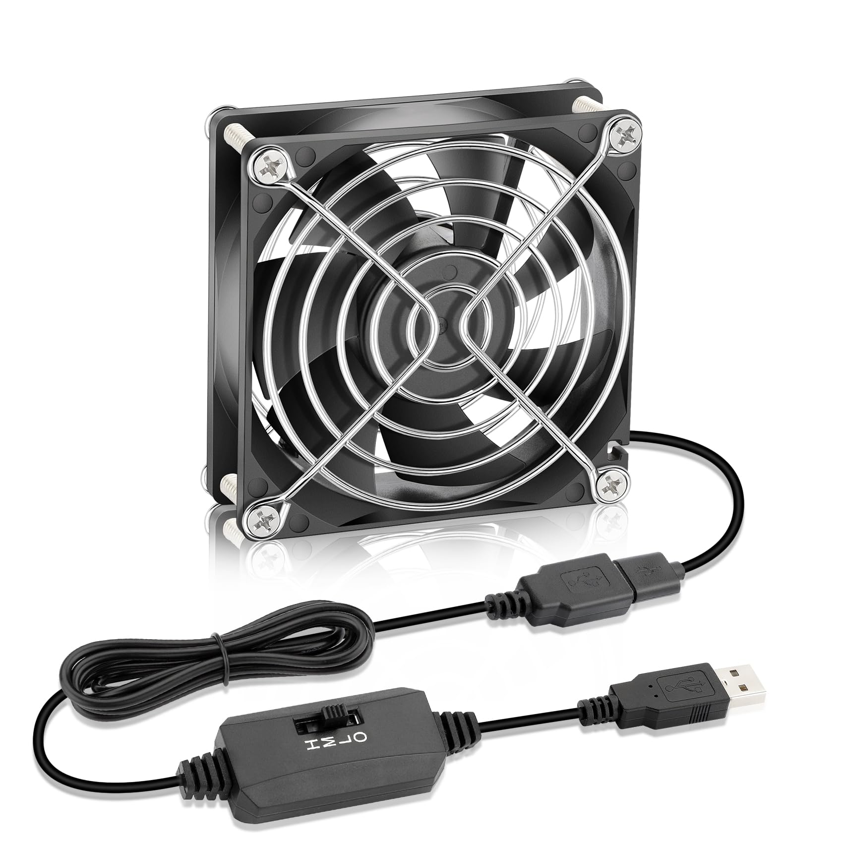 80mm Small Computer Fan with Speed Controller, Cooling for Gaming PC, Modem, Cabinet, Terrarium, Greenhouse