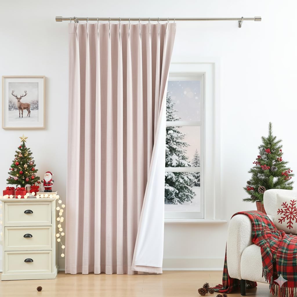 Ready Made: Each package includes 1 piece of Full Blackout Rustic pinch pleated panel, measuring 60" wide and 84" long. Hooks are included. Customized sizes are available upon your detailed needs. Quality Material: Our curtains feature rustic Farmhouse style, textured fabric that not only feels great to the touch but also enhances the overall quality of your living space. Perfect Pinch Pleats: Luxury sew-in pinch pleats top design makes it easy for installation --with back tabs, with the included hooks, with your own clips or with your track system. Rings are not included. Functionality: These curtains come with built-in liners that ensures complete privacy and superior light control. They also perform well in thermal insulating and noise reducing. Care Instruction: Machine washable in cold water. Gentle cycle, tumble dry low. Iron at low temperature if needed. WEST LAKE Bailey Pinch Pleated Full Blackout Curtain Panels Textured Window Treatment