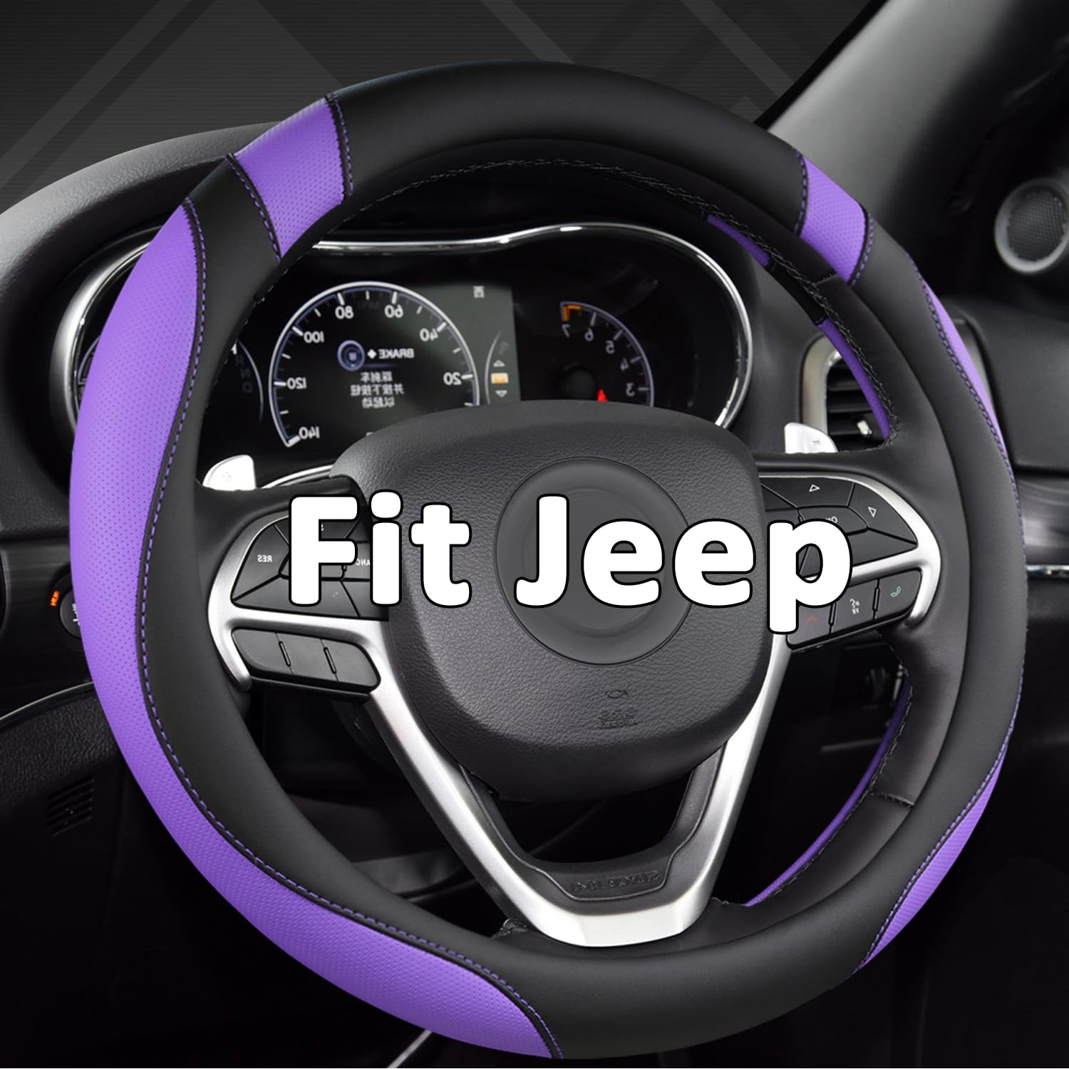 【CUSTOM FIT】This West Llama steering wheel cover fits Jeep 14.5-15 inch (37 cm to 38 cm) steering wheel. Please check the compatibility list. 【HIGH QUALITY MATERIAL】This steering wheel cover is made of high quality microfiber leather, which is soft texture, comfortable, eco-friendly, wear-resistant and durable. 【SAFE ANTI-SKID DESIGN】- The inner ring of these steering wheel covers is made of natural rubber and with non-slip veins design, which improves the grip and improves the control of the steering wheel for safer driving. 【DECORATION AND PROTECTION】- This elegant steering wheel cover not only protects your steering wheel well, but also perfectly decorates your car interior. The stylish design will make it blend in perfectly with your car interior. 【EASY TO INSTALL】You can install this steering wheel cover without any tools, please refer to the installation method in the package. Installation Tips: Since the steering wheel cover is folded to pack, please use a hair dryer to heat it before installation. Heating will make installation easier and help smooth the crease. This car steering wheel cover fits Jeep steering wheel with 14.5-15 inch (37 to 38 cm) outer diameter.
