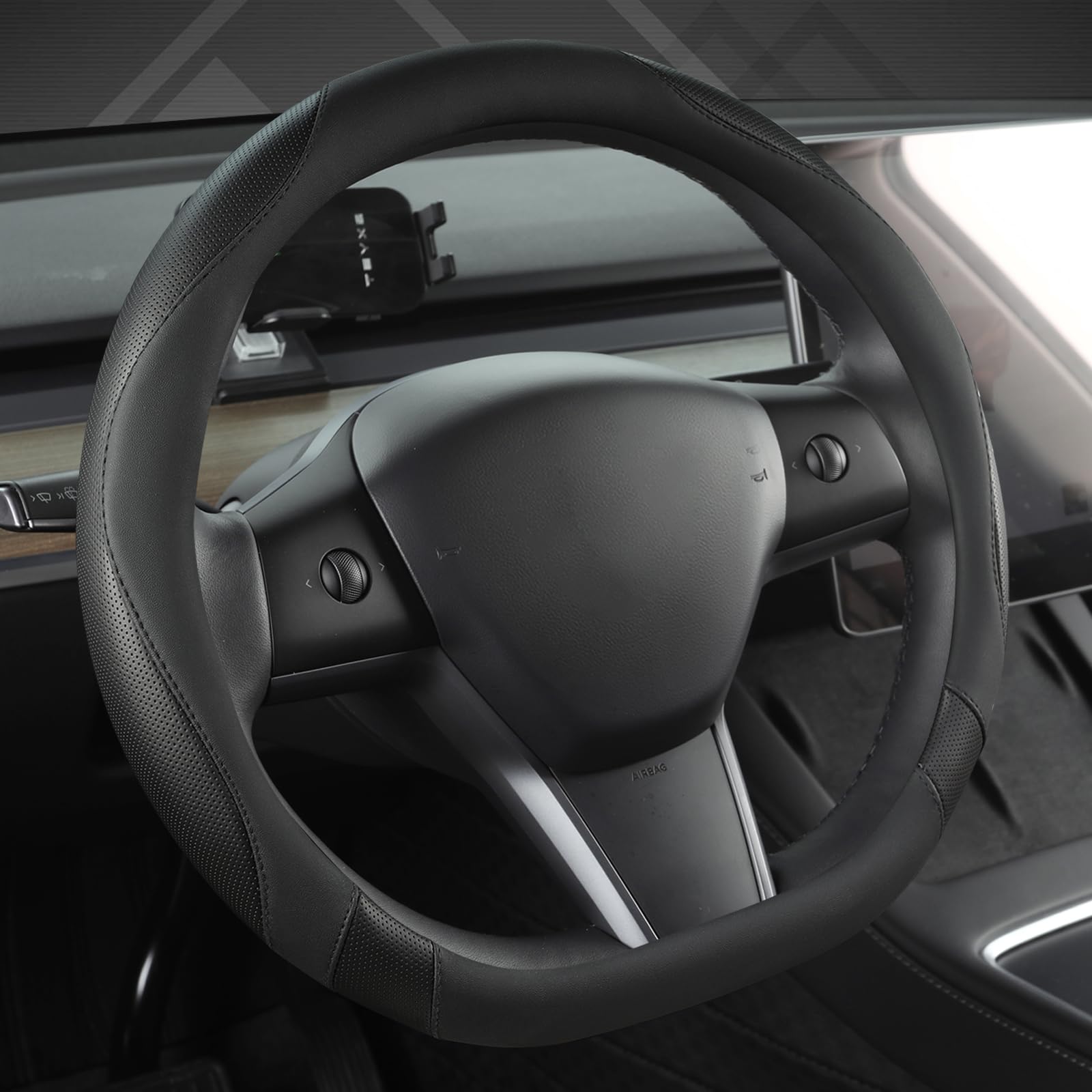 【CUSTOM FIT】This West Llama steering wheel cover is customized for Tesla small steering wheel. Please check the compatibility list. 【HIGH QUALITY MATERIAL】This Honda steering wheel cover is made of high quality Nappa leather, which is soft texture, comfortable, eco-friendly, wear-resistant and durable. 【SAFE ANTI-SKID DESIGN】- The inner ring of these steering wheel covers is made of natural rubber and with non-slip veins design, which greatly improves the grip and improves the control of the steering wheel for a safer driving. 【DECORATION AND PROTECTION】-This steering wheel cover not only protects your steering wheel well, but also perfectly decorate your car interior. The stylish design will make it blend in perfectly with your car interior. 【EASY TO INSTALL】You can install this steering wheel cover without any tools, please refer to the installation method in the package. Installation Tips: Since the steering wheel cover is folded to pack, please use a hair dryer to heat it before installation. Heating will make installation easier and help smooth the crease. This car steering wheel cover fits tesla steering wheel with 14-14.25 inch (35.5 to 36 cm) outer diameter.
