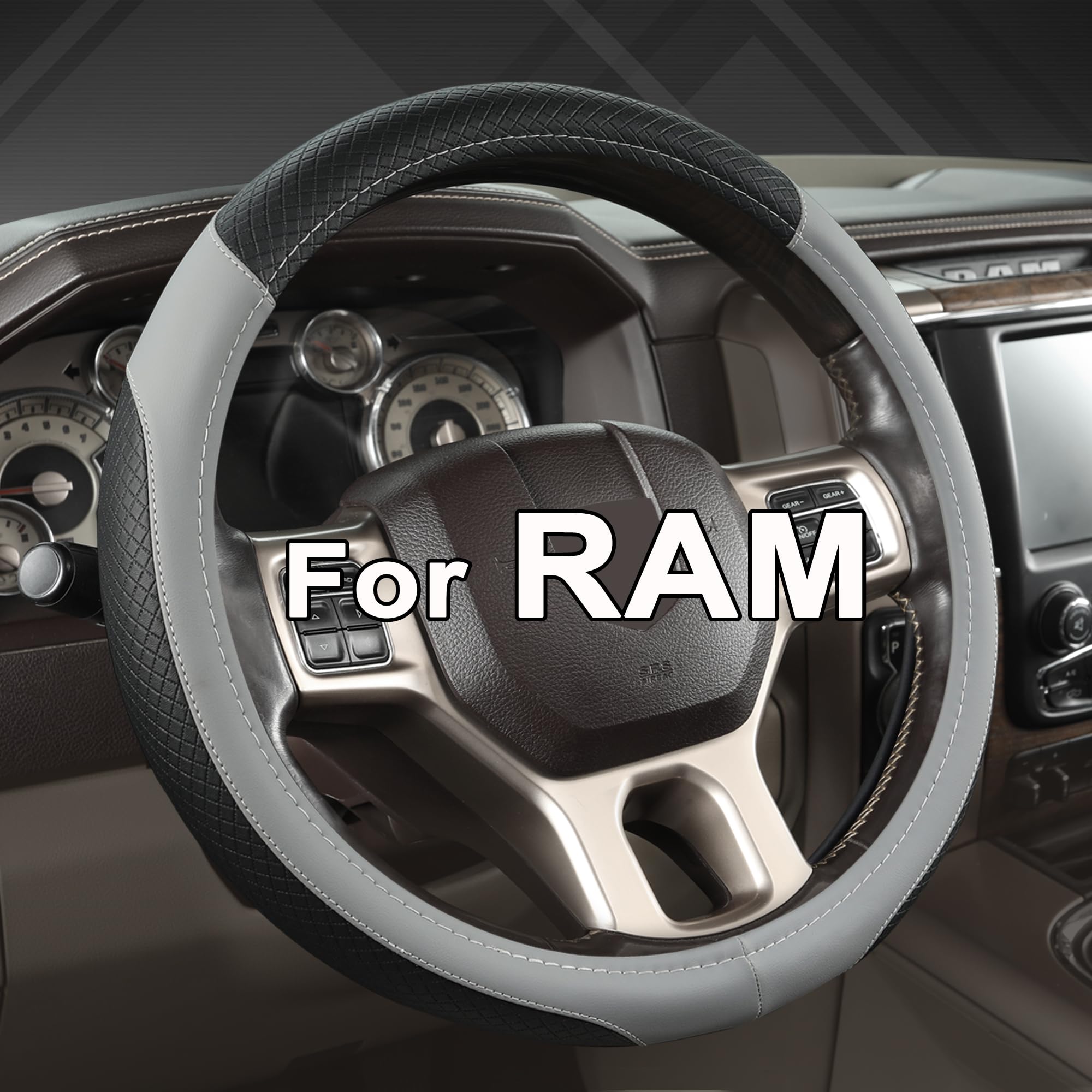 【CUSTOM FIT】This West Llama steering wheel cover is customized for Ram 1500 (2012-present, 1980-1988), Ram 2500 (2012-present, 1980-1988),Ram 3500 (2012-present, 1980-1988) large steering wheel with 15.5-16 inch diameter. 【HIGH QUALITY MATERIAL】This Ram steering wheel cover is made of high quality leather, which is soft texture, comfortable, eco-friendly, wear-resistant and durable. 【SAFE ANTI-SKID DESIGN】- The inner ring of these steering wheel covers is made of natural rubber and with non-slip veins design, which greatly improves the grip and improves the control of the steering wheel for a safer driving. 【DECORATION AND PROTECTION】- This sport steering wheel cover not only protects your steering wheel well, but also perfectly decorate your car interior. The stylish design will make it blend in perfectly with your car interior. 【EASY TO INSTALL】You can install this steering wheel cover without any tools, please refer to the installation method in the package. Installation Tips: Since the steering wheel cover is folded to pack, please use a hair dryer to heat it before installation. Heating will make installation easier and help smooth the crease. West Llama car steering wheel cover for Ram will fit Ram 1500 (2012-present, 1980-1988), Ram 2500 (2012-present, 1980-1988),Ram 3500 (2012-present, 1980-1988), Charger(2006-2009),Nitro(2007-2012),Caravan(2008-2011).