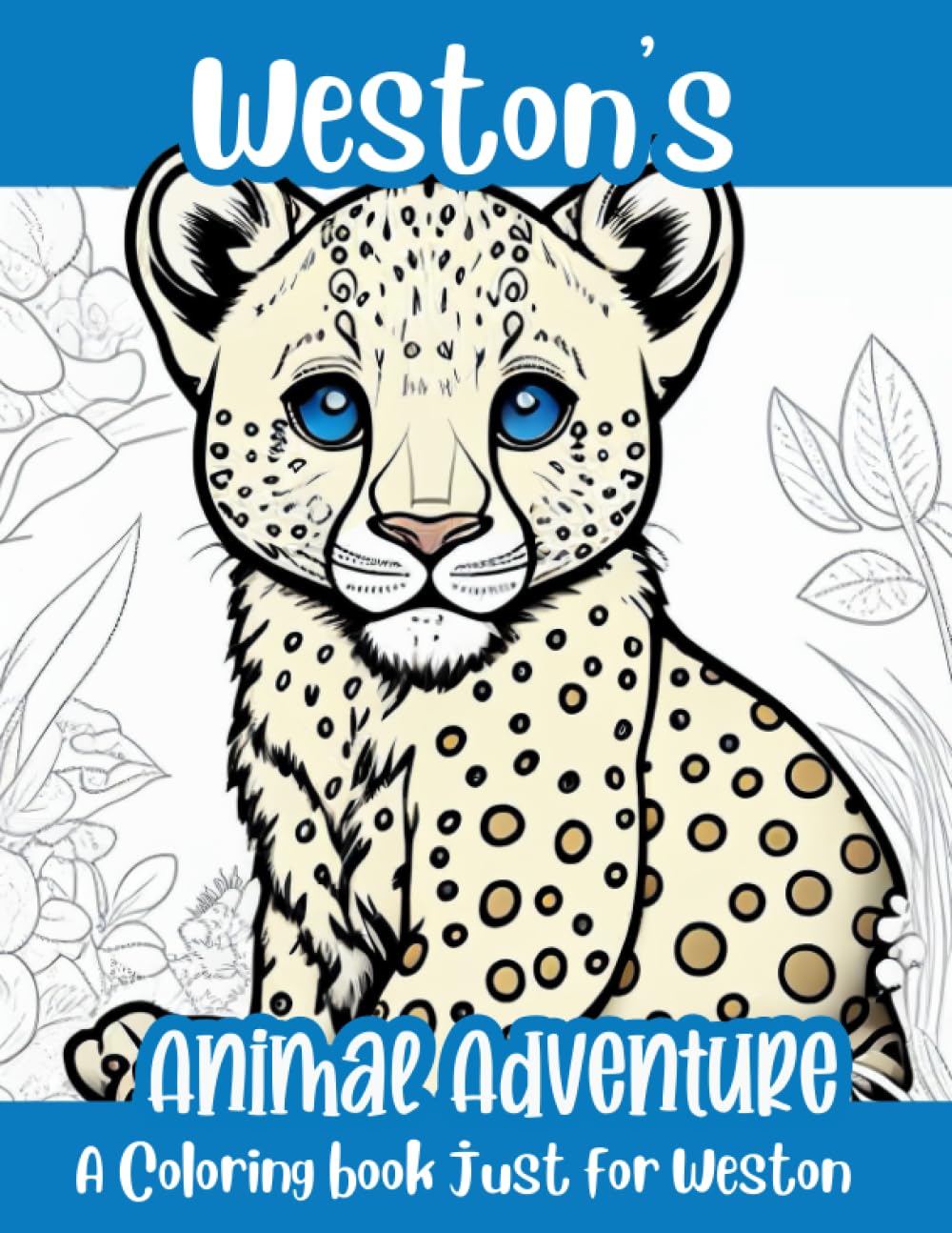 Introducing "Weston's Animal Adventure Personalized Coloring Book" – a exciting, inspirational, and educational coloring adventure specially created for little boys named Weston! This coloring book combines the allure of animals, the power of positive affirmations and advice, spelling practice for his name, and a celebration of creativity, self-esteem, and artistic expression. Each spread in this whimsical coloring book features Weston's name, making him the star of every page and helping him practice spelling his name in a fun and repetitive way. As Weston embarks on his coloring journey through this animal-filled land, he'll encounter a series of uplifting and empowering affirmations and advice. These positive messages will inspire self-belief, kindness, and the appreciation of individuality, nurturing a strong sense of self-worth and confidence as he explores his artistic skills. Key Features: • Personalized coloring book with name featured on every spread • 50 delightful pages of illustrations waiting to be colored • 50 pages filled with affirmations and advice • Left page dedicated to affirmations, with the coloring page on the right for easy coloring • Suitable for children aged 2 to 10 years • Makes a perfect customized gift Sample Affirmations: • "You are loved" • "You are a gift" • "Treat others as you want to be treated"