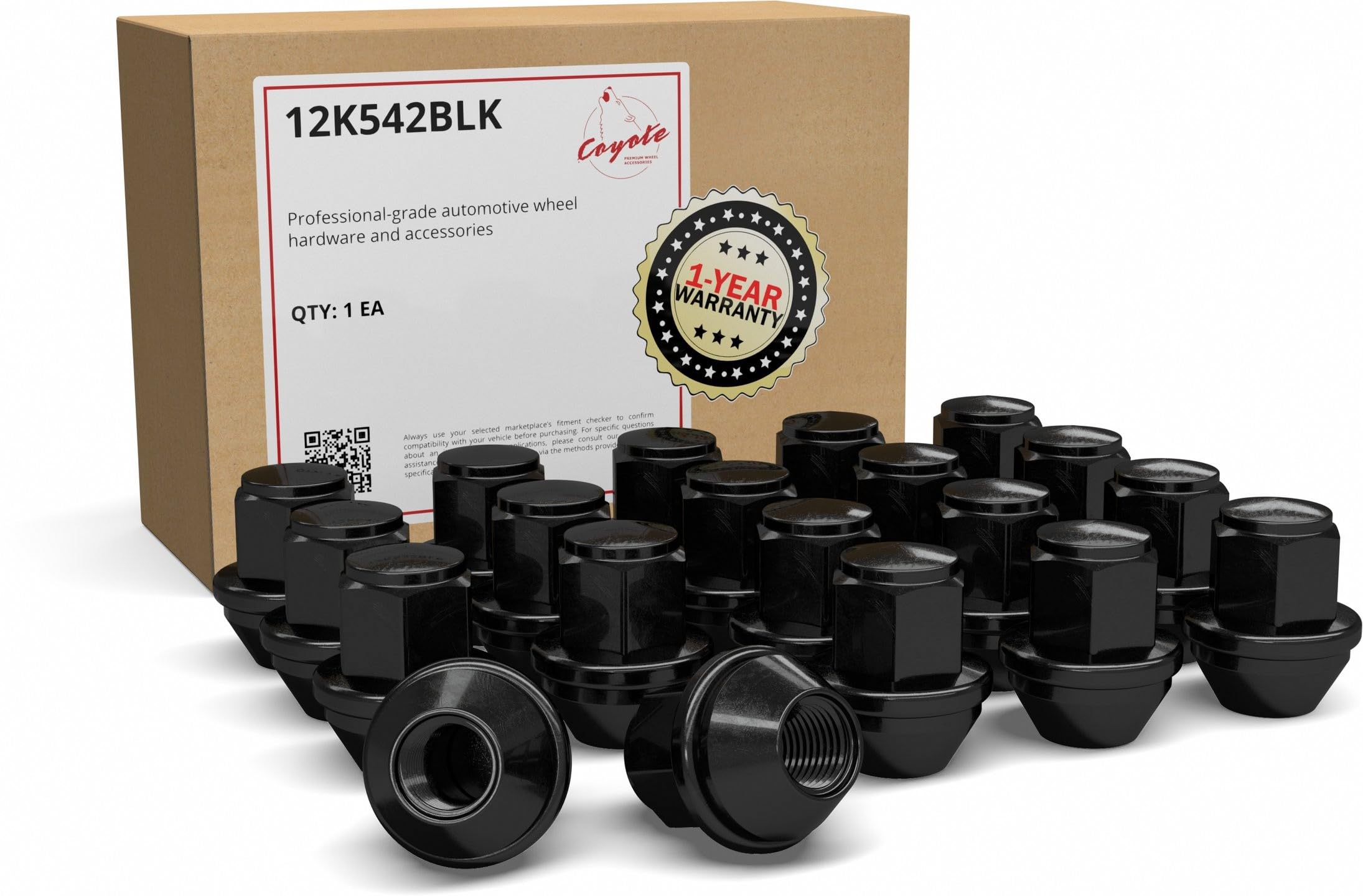EXACT FACTORY SPECIFICATIONS: Includes 20 Pcs OEM Style Lug Nuts 1/2"-20 Thread; 1.45" Long; 13/16" 21mm Hex; 60 Degree Conical Taper Seat; True 1 Pc Construction Carbon Steel Construction with Black Finish; Direct Replacement for Factory Part #'s 9R3Z-1012-A | 611-292 PRECISION OEM FITMENT ENGINEERED FOR FACTORY WHEELS compatible with 1/2"-20 threaded lug nuts Ford 2006-11 Crown Victoria 2006-14 Mustang | Mercury 2006-11 Grand Marquis 2004-07 Monterey Confirm compatibility with AMAZON CONFIRM FIT. FOR OEM WHEELS Only DESIGNED & TESTED IN USA: Meets or exceeds OEM standards for Ford and Lincoln models. One‑piece design resists swelling or delamination seen in capped two‑piece lug nuts, ensuring reliable clamping force and long‑term durability under daily driving conditions. RELIABLE PERFORMANCE & CORROSION RESISTANCE: Premium multi‑layer Black coating tested for 72‑hour salt‑spray corrosion protection. Ideal for factory wheel replacements, brake service, and tire rotation on compatible vehicles without risk of damage to wheel seats. COMPLETE 20 Pcs SET: Full lug nuts set for four wheels Black OEM Style 60 Degree Conical Taper Seat nuts ready for direct installation. Upgrade now to restore factory-fresh appearance and the safety you are looking for. Wheel Accessories Parts 20 Pcs 1/2"-20 Thread OEM Style Lug Nuts 1.45" Long Black 13/16" 21mm Hex Fits Ford Mustang Crown Victoria | Mercury Grand Marquis 9R3Z-1012-A | 611-292