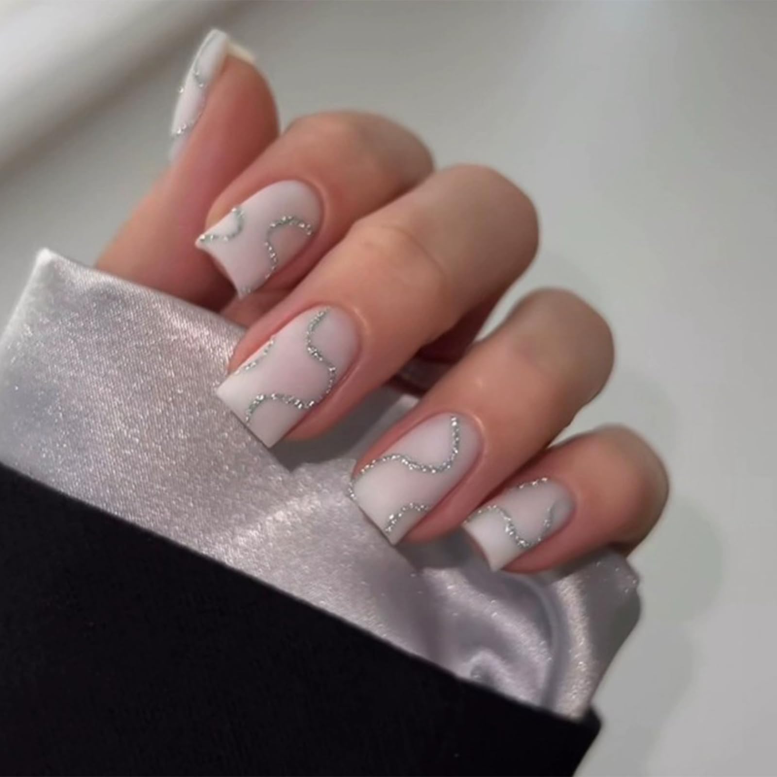 Packaging includes:You will receive 24 Silver Glitter fake nails, 24 jelly glue, 1 small crystals stick, alcohol bag, nail file, no additional tools required High quality nail art:These glossy fake nails are made of safe and environmentally friendly materials,You can use them with confidence to decorate your nails Enduring Effect: You can use the nail glue sticker we give away silver glitter fake nails can be reused ), if you want to last longer, please use liquid glue, the effect can last 1 to 2 weeks Wide Applications:Lines fake nails with nail art designs can be used on various occasions, which can meet your needs at weddings, proms, birthdays, parties, Valentine's Day dates, and daily life Good Service: if you have any questions about the item, please feel free to contact us in time. We will respond to you as soon as possible and do our best to solve your problems 24Pcs Silver Glitter Lines Fake Nails Swirls French Tip Press on False Nails Cute Artificial Nails for Women Girls Nail Art Decorations