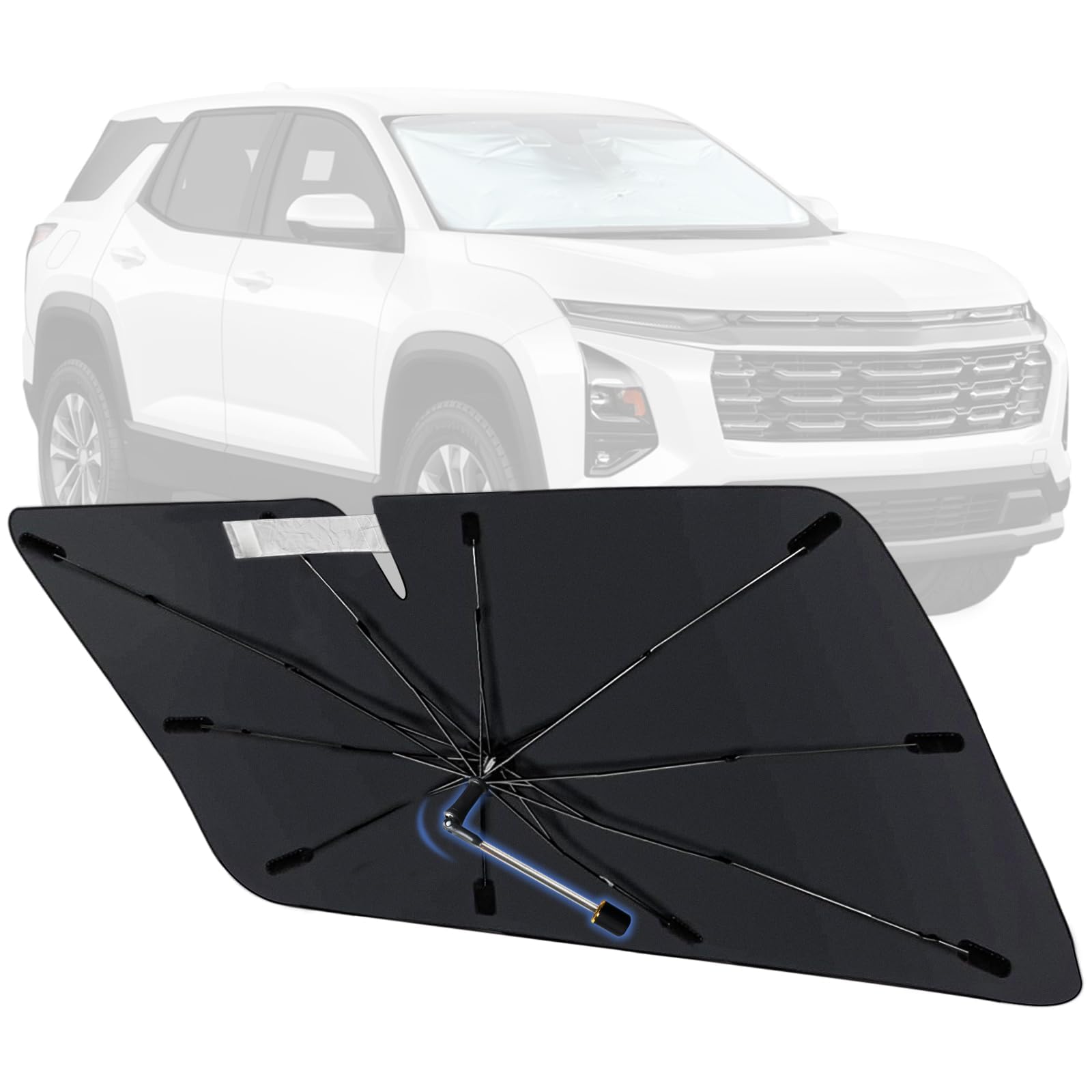 Custom-fit for Chevrolet Equinox: Designed specifically for Equinox 2018-2022 2023 2024 2025, Visufy car sun shade ensures edge-to-edge coverage. Visufy parasol para carro fits like a glove, providing 100% protection for your car Stay Cool and Protected All Summer: Visufy automotive interior sun protection features a highly reflective surface that blocks 99% UV rays, reduces heat buildup by up to 40°F, and helps prevent your interior from fading and cracking. Keeps your car cooler from scorching summer Easy to Use and Compact to Store: Visufy car front window shade opens effortlessly like an umbrella and pops up in seconds. Its lightweight, collapsible design allows it to be neatly stored in your car’s glove compartment or door pocket 360° Rotating Shaft for Dashboard Protection: Visufy car umbrella shades feature a 360° rotating shaft, ensuring an adjustment for perfect positioning and easy installation, protects your dashboard and car screen Durable Fiberglass Frame for Secure Fit: Built with 10 reinforced fiberglass ribs, Visufy windshield visor features a bendable frame that flexes up to 75° without breaking, fitting Equinox windshields with a firm, stable hold Designed specifically for Your vehicle, Visufy car sun shade ensures edge-to-edge coverage. Visufy parasol para carro fits like a glove, providing 100% protection for your car.Visufy automotive interior sun protection features a highly reflective surface that blocks 99% UV rays, reduces heat buildup by up to 40°F, and helps prevent your interior from fading and cracking. Keeps your car cooler from scorching summer.Visufy car front window shade opens effortlessly like an umbrella and pops up in seconds. Its lightweight, collapsible design allows it to be neatly stored in your car’s glove compartment or door pocket