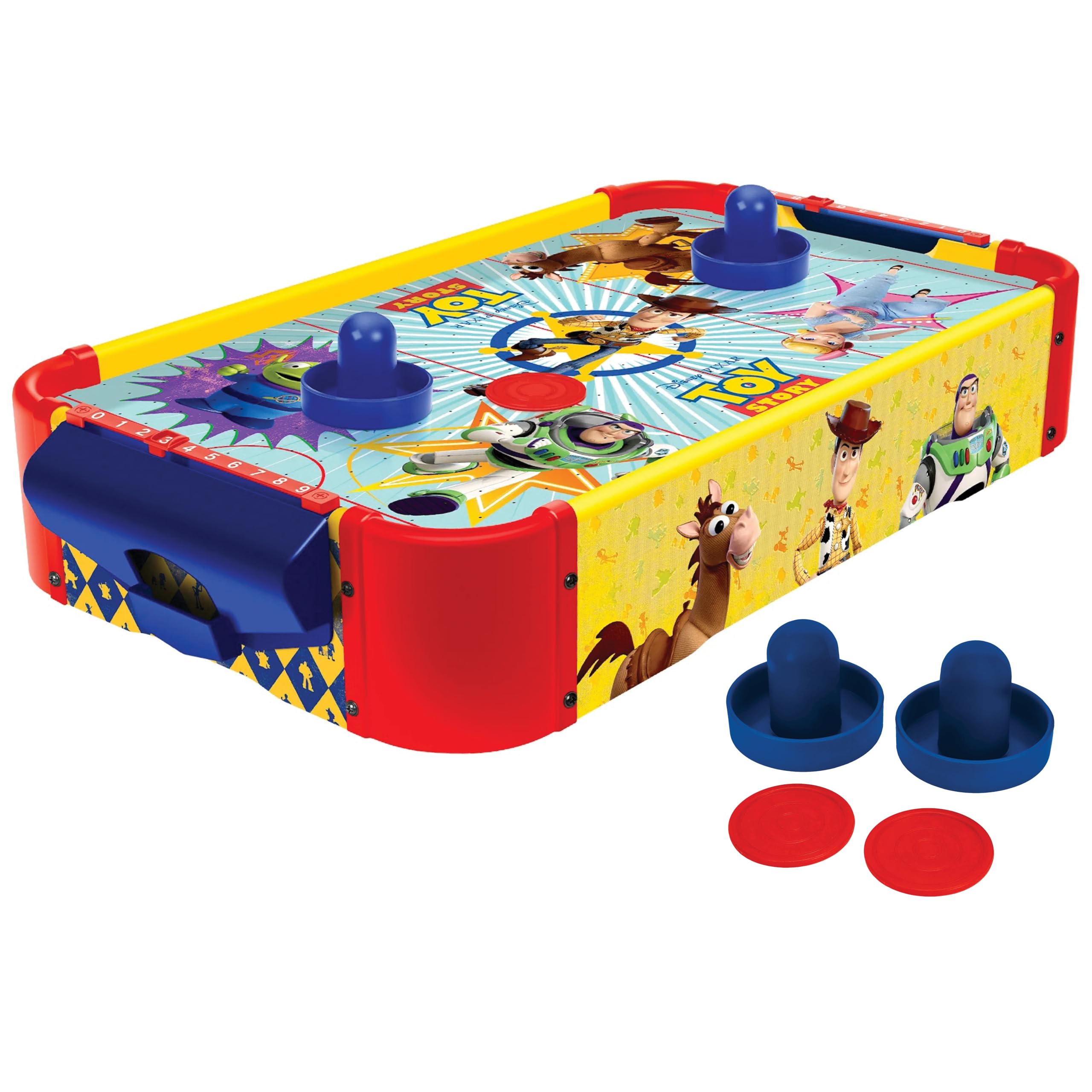 Blast Off with Woody & Buzz – Officially licensed by Disney Pixar and featuring colorful designs featuring Woody and Buzz Lightyear, this kids air hockey table immerses young fans in a head-to-head showdown built for fast play and nonstop fun Real Air Hockey Feel - Unlike standard toy tables, our tabletop game features a built-in fan that creates consistent airflow, keeping the puck gliding smoothly across the surface for nonstop, real-feel action that kids can’t get enough of Arcade Fun, Anywhere You Go - This compact air hockey table for kids delivers arcade-style action in a lightweight, travel-ready build that sets up on any flat surface — bringing big-game excitement to bedrooms, rec rooms, and family trips Built to Last with Sturdy Wooden Design - Durable wood construction and bold character graphics ensure the mini air hockey table stands up to daily play, delivering lasting performance through back-to-back matches and high-energy rivalries Perfectly Sized for Kids Ages 4+ - Easy-grip pushers and kid-friendly dimensions make it simple for young players to jump into the action, turning game nights, birthdays, and everyday play into fast-paced fun for ages 4 and up Bring home the action-packed excitement of arcade play with the World Tech Toys Toy Story Tabletop Air Hockey Game for Kids — an officially licensed Disney Pixar game designed for ages 4 and up. Packed with bold character graphics and built from durable wood, our air hockey table delivers a real arcade feel in a compact, kid-friendly format. The smooth wooden surface and built-in airflow system keep the puck gliding effortlessly, giving kids a fast, real-feel hockey experience they’ll love. Perfect for two-player fun, the table includes easy-grip pushers, a puck, and manual score counters for friendly competition. Whether it’s Woody versus Buzz Lightyear or sibling versus sibling, every match brings high-energy excitement into your home. Lightweight and travel-ready, it’s ideal for game rooms, bedrooms, or on-the-go setups—no full-size table needed. This tabletop air hockey table for kids is perfect for birthdays, holidays, or any day you want to reduce screen time and get kids moving. It’s a game room upgrade with hero power built right in.