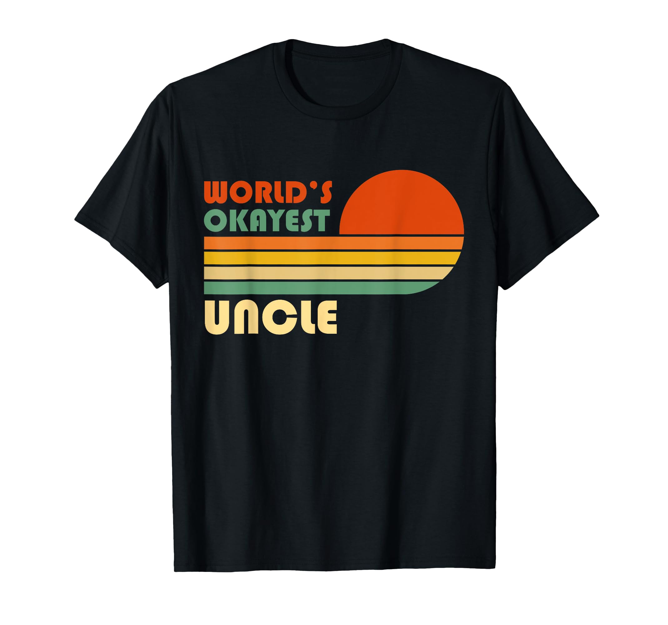 World's Okayest Uncle Funny Gifts, Retro Vintage Sunset Design. Great gifts idea for Birthday and Christmas. Lightweight, Classic fit, Double-needle sleeve and bottom hem