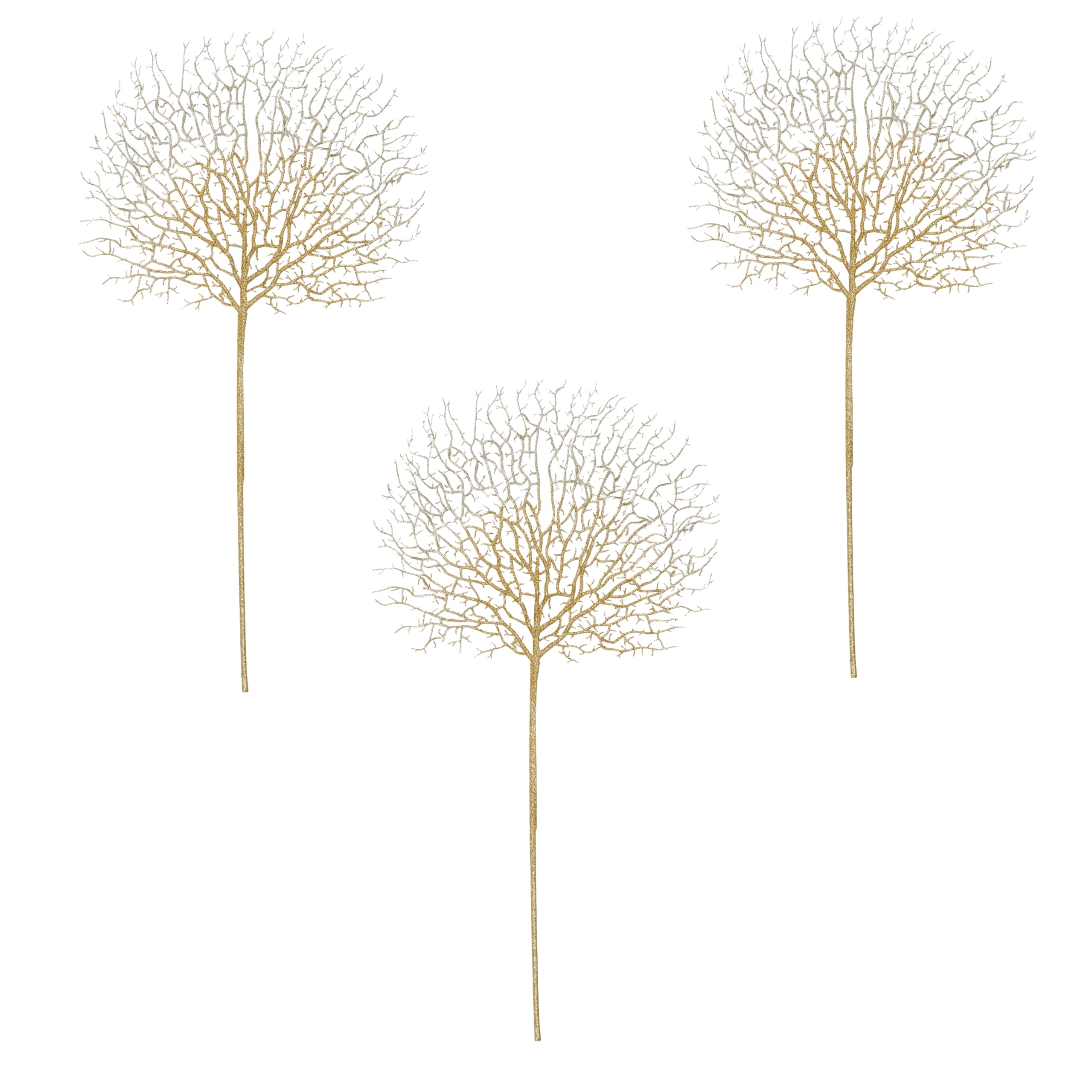 Worth Imports 30" Glittered Coral Spray, Gold, Set of 3