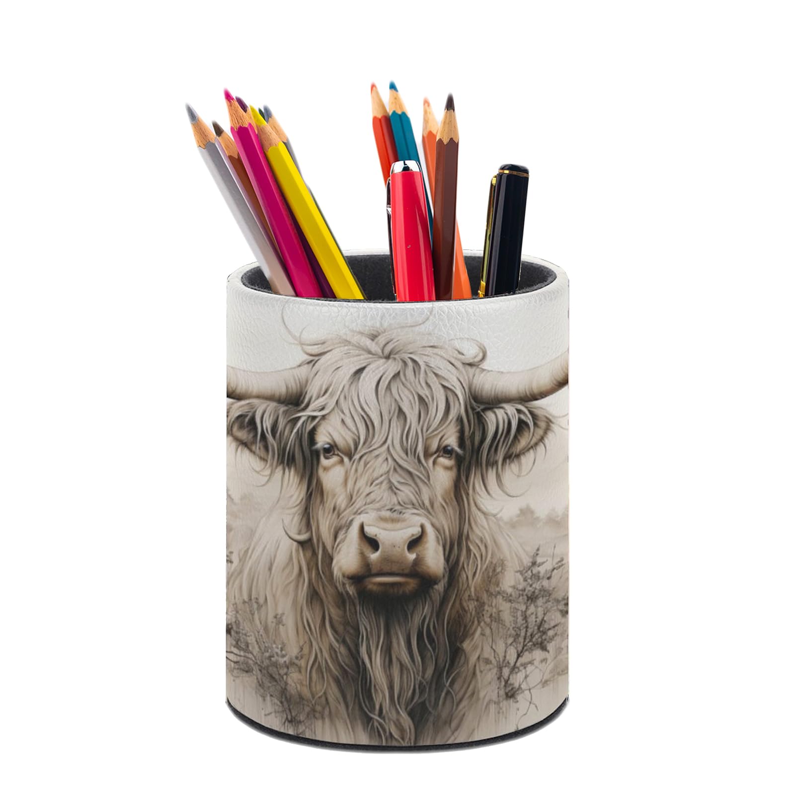 XUWU Highland Cow Pen Holder Pencil Organizer Cute Pencil Cup Desk Decor Makeup Brush Holder PU Multifunctional Office Suppliesfor Home Classroom