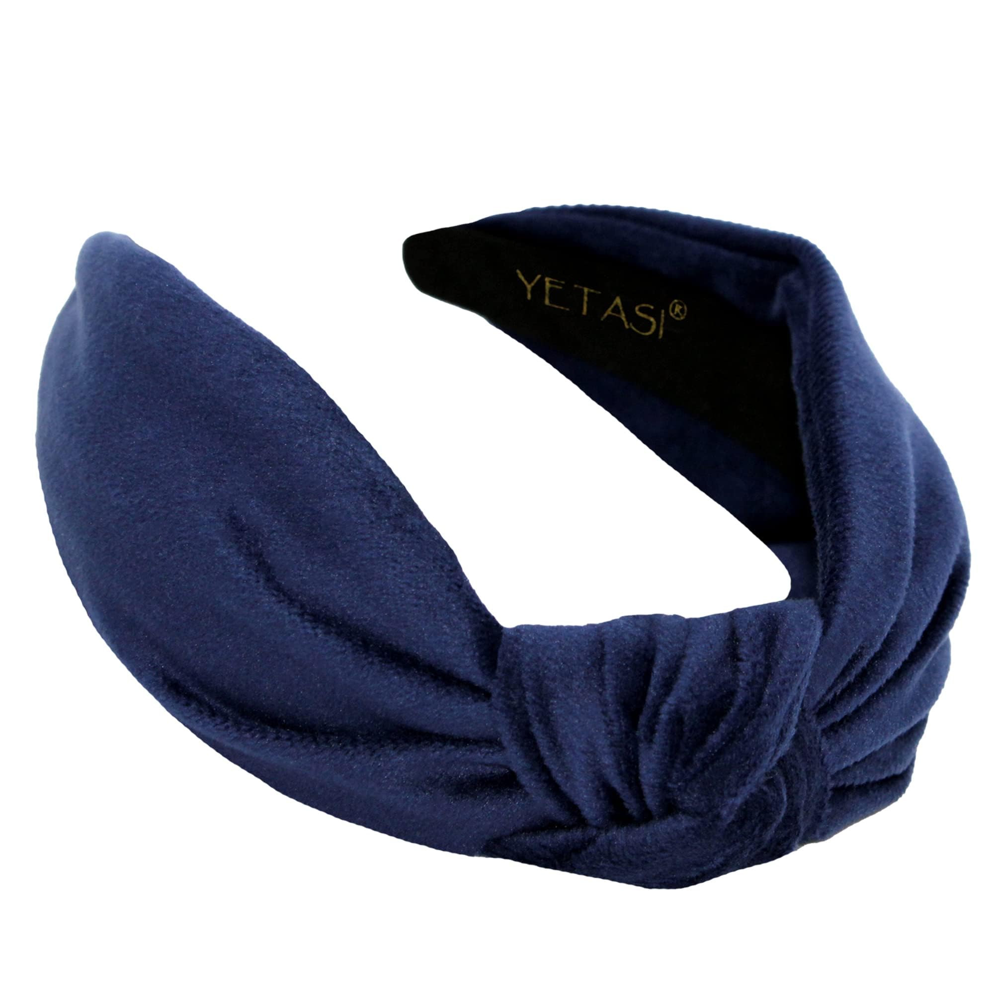YETASI Royal Blue Velvet Headbands Women Girls Trendy, Womens Headbands are Knotted Headband for Women's Hair, Cute Top Knot Fashion Designer Head