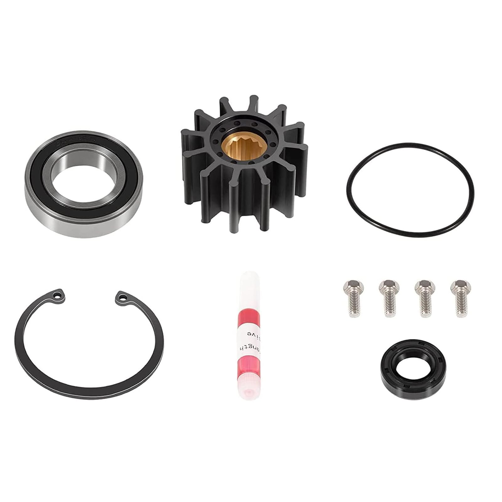 Application: Fits for Volvo Penta 3.0 , 4.3 , 5.0 , 5.7 , 8.1 crank driven sea water pumps up until 2005. . Replaces for Johnson 09-5000.Fit for Pump numbers: 21214595 , 21214596 , 21214599 , 21214601 For Models: 5.0GiPWTR 5.0GL 5.0GLPEFS 5.0GLPWTR 5.0GXi 5.0OSi 5.7Gi 5.7GL 5.7GSiPEFS 5.7GSiPWTR 5.7GSPEFS 5.7GSPWTR 5.7GXi 5.7OSi 5.7OSXi Function: The water pump impeller repair kit is made from high quality material and well-tested, durable & reliable. Used to repair/rebuild the Volvo Penta crank mounted raw water pump, makes service job more easy and convenient Superior Material: The bearing, retaining ring and screws are made of stainless steel, and the seals are made of corrosion-resistant stainless steel frame and spring, durable, can be used in sea water for a long time and reliable performance Service Quality: If you encounter any problems, please contact us in time, we will deal with you as soon as possible