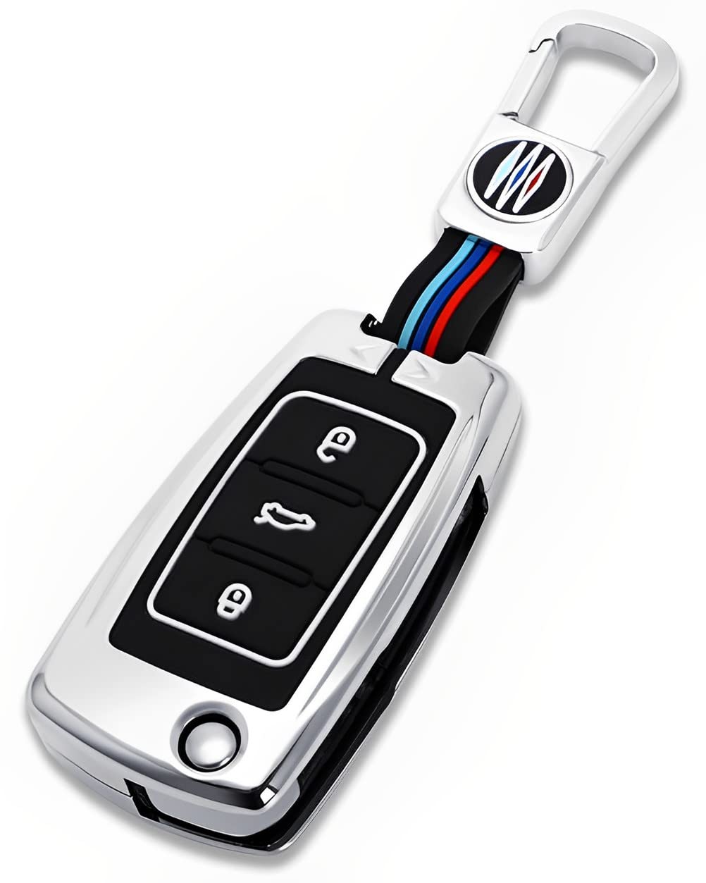 Fits Models: This for VW key fob case designed for Volkswagen Atlas Jetta Golf GTI Passat Polo Tiguan Touareg Beetle Full Protection: This for Volkswagen key cover made of zinc alloy and silicone, full cover 360 degrees protect your key No Signal Reducyion: Car fob holder will not block the key signal Seamless Matching: According to the original key fob 1:1 design, ensure the buttons are perfectly matched with your key Pay Attention: Before buying please make sure the key shape match, please refer to the 2nd picture Fit for Volkswagen flip 3 Buttons Key.(Please refer to the appearance of the 2nd picture)