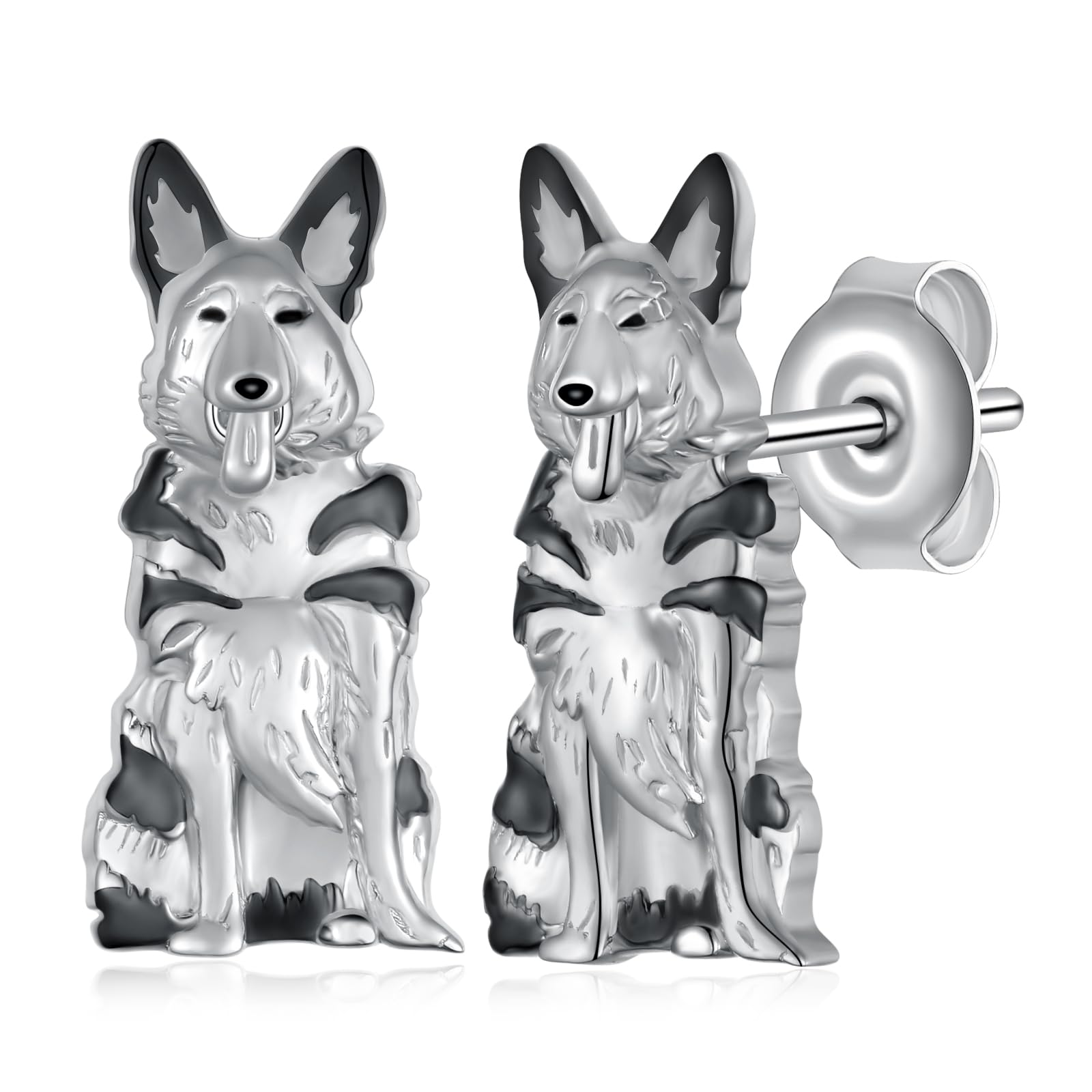 German Shepherd Earrings Design: The German Shepherd, known for its loyalty, courage, and intelligence, holds a special place in people's hearts, consistently bringing joy to its owner's life. Throughout history, these dogs have been steadfast companions, offering genuine friendship and a keen ear for sharing moments of both happiness and sorrow. These distinctive German Shepherd earrings make an ideal gift for devoted German Shepherd enthusiasts and all dog lovers alike. Dog Earrings Material: The Sterling Silver Dog Earrings is made of high-quality 925 sterling silver, charming. Lead free, nickel free, anti-allergy and high polished. Suitable for long-term wear. German Shepherd Earrings for Women Size: The german shepherd stud earrings size is 8 x 17mm(0.31 x 0.67 inch), weights: 2.31g. The perfect gift for german shepherd lovers German Shepherd Gifts: The german shepherd jewelry comes with an exquisite gift box. Ideal gift for any occasion: Mother's Day, anniversary, Christmas, wedding, party, family, friends and dog lovers all make a great gift WHAT YOU GET: Your package includes a pair of German Shepherd Stud Earrings, a beautiful gift box, and a white polishing cloth. For any inquiries about our Dog Stud Earrings, please contact us and we will provide a prompt and helpful response. Thank you for choosing us for your jewelry needs