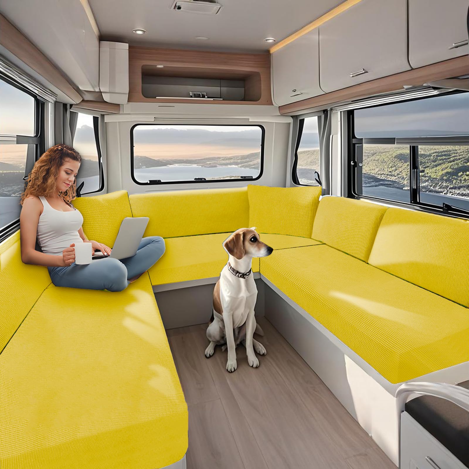 ZYXFYY Caravan Seat Cover Stretch Jacquard, Non-Slip RV Dinette Cushion Covers with Tie-up Straps, Couch Cushion Covers for Camper Sofa Bench (Yellow,