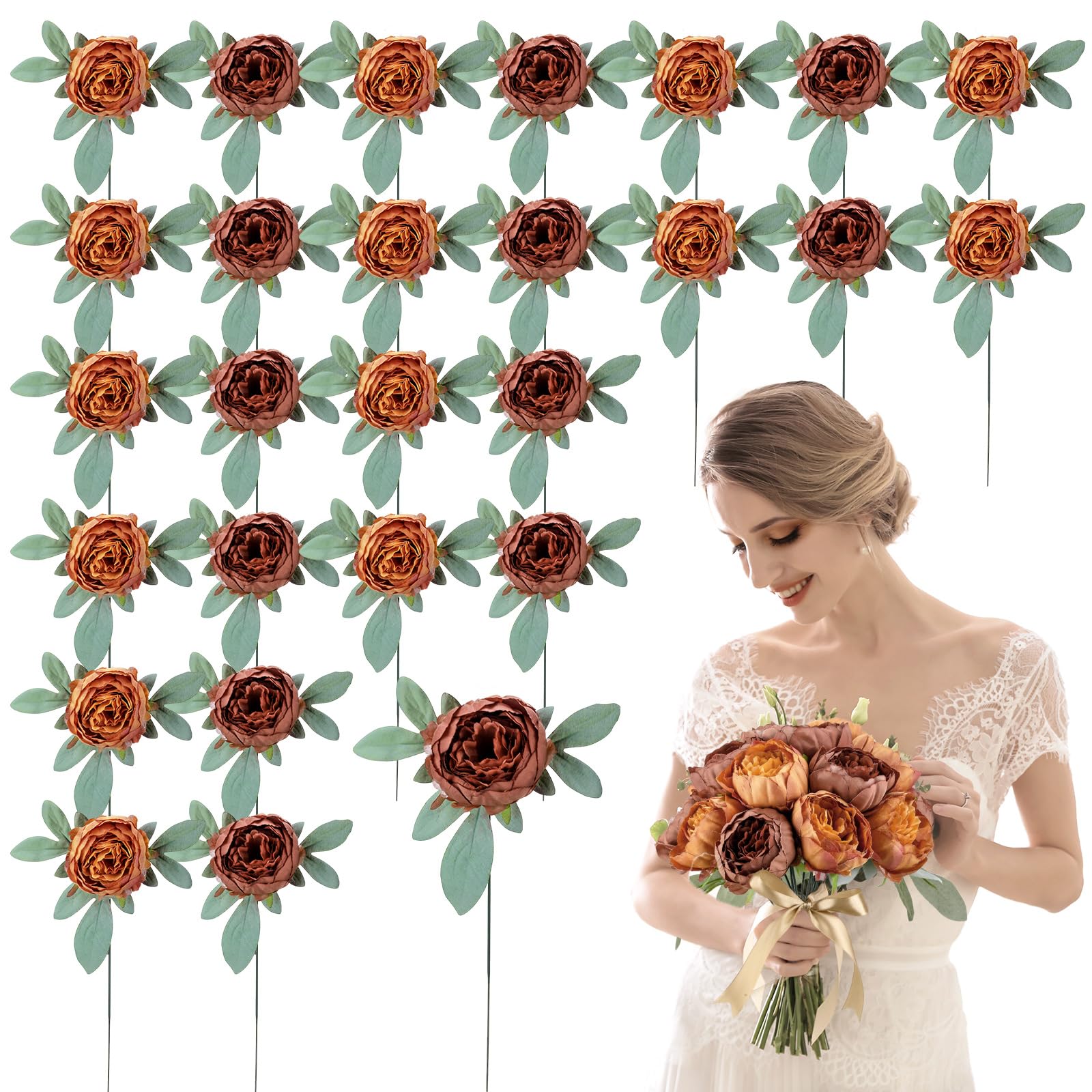 What You Will Get: what you will receive are 50 pieces of faux peonies bulk, each equipped with a stem and green leaves, easy to assemble and use, delicate and convenient, sufficient to meet your daily and party use needs, or you can also share them with others Reliable to Use: our flowers bulk peonies are mainly made of quality silk and plastic flowers, and metal made stems, with exquisite workmanship, soft and smooth, light but sturdy, not easy to fade, deform or rust, which can be applied for a long time without water, soil or sunlight Size Details: the peonies artificial flowers heads measure approx. 4 inches in diameter, with long stems of approx. 14.7 inches in length, which are easy to bend, cut and shape; The suitable size flowers can bring the beauty of elegance and attractive visual effects to you Realistic Appearance: as you can see in the pictures, the silk peonies with stems are mainly designed in brown and orange; The flowers and leaves are designed with clear realistic textures, which will create a romantic and warm atmosphere for a house Wide Applications: the artificial peony flowers can not only be home decorations, but also be wedding ornaments, like bride's bouquets and table centerpieces; They can be applied as DIY supplies, you can use them to make your own flower garlands and wreaths Features: Sweet gifts: As we all know, the peony symbolizes beauty and missing. Therefore, you can send the faux flower heads as gifts to your family, friends and other loved ones, expressing your heartfelt wishes while strengthening your relationships. Use scenarios: With quality material and exquisite workmanship, these white artificial flowers with stems can play decorative and functional roles in wedding ceremonies, bridal showers, bachelorette parties, engagements, birthday parties and more. Specifications: Main material: silk, plastic and metal Main color: brown and orange Diameter of flower: approx. 4 inches Length of stem: approx. 14.7 inches Package includes: 50 x Fake artificial white peonies 50 x Stems 50 x Leaves Notes: Manual measurement, please allow slight errors on size. The color may exist a slight difference due to different screen displays. The pointed parts may include, please use it carefully. Flowers and stems may be bent during transportation, please arrange the petals in time to get a better shape.