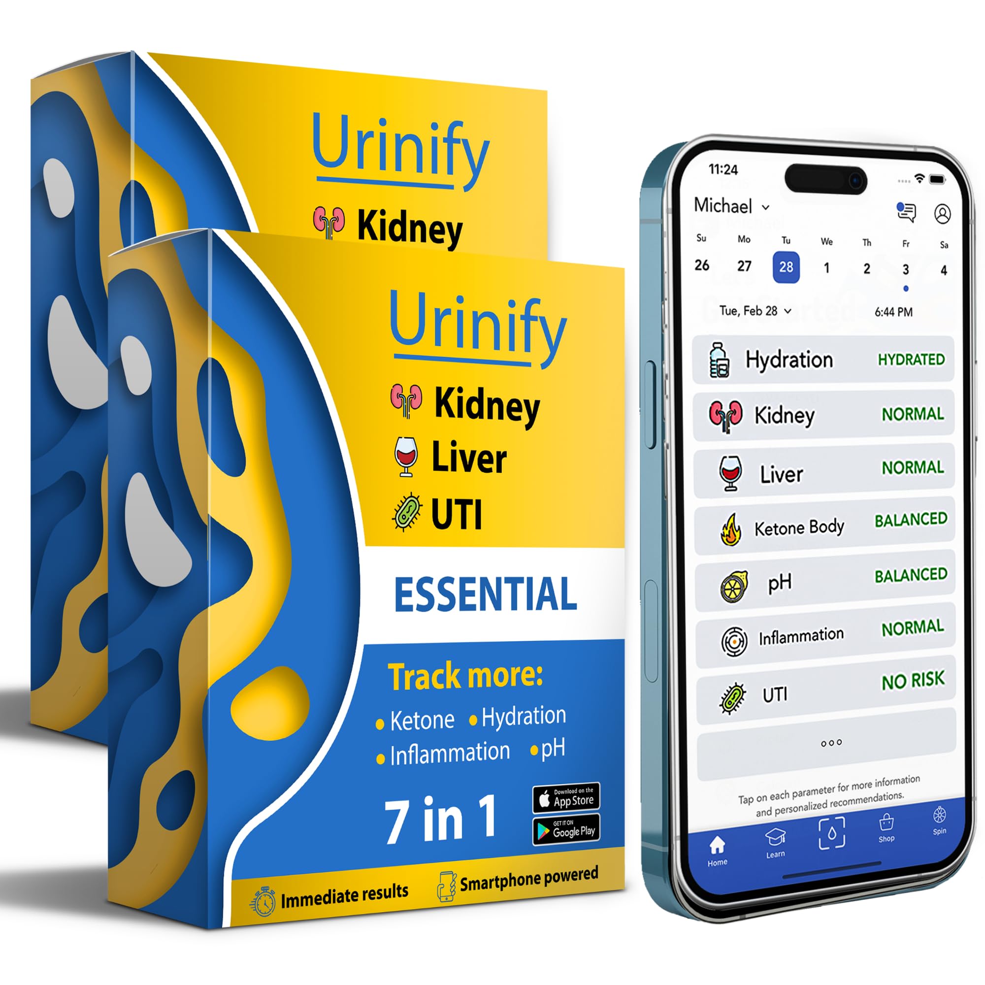 Make quick, well-rounded health decisions minus frequent clinic visits with urine test strips for infection from Urinify. Your All-in-One Urine Test Kit These sophisticated UTI pH test strips aid in the error-free detection of urinary tract infection as well as liver inflammation. They also help you read into other important health indicators, such as hydration and urine ketone levels, kidney test at home. Get your results in as fast as under 2 minutes with the 6 keto urine strips that come with the kit and the Urinify UTI test app that’s downloadable both from the App Store or Google Play! For Your Utmost Convenience No need for costly lab urine tests that take forever to turn in results. Our urine analysis test strips generate results quickly and accurately. If you live with elderly family members who may have underlying abnormal conditions, these urinary pH test strips help detect them. That way, you can promptly respond to their medical needs - most especially if weekly clinic visits are inconvenient for them. Wide Application For athletes and pregnant women who have to watch their diet, our ketosis test strips give a good glimpse into how the body metabolizes food for energy. This will then help them maintain a nutritional balance. With Urinify, athletes can see detailed information about their weight loss progress in less than 2 minutes. It helps them see if their diet is really working or not. Apart from that, users get customized and personalized recommendations based on their unique body biomarkers. Product Disclaimer Our UTI test strips help reveal clues about one’s general wellness, nutrient imbalance, and select infections but do not provide expert health advice. They should never be substituted for professional medical diagnosis or treatment. Be more proactive with your and your loved ones’ health with our urine test strips and total keto diet app!
