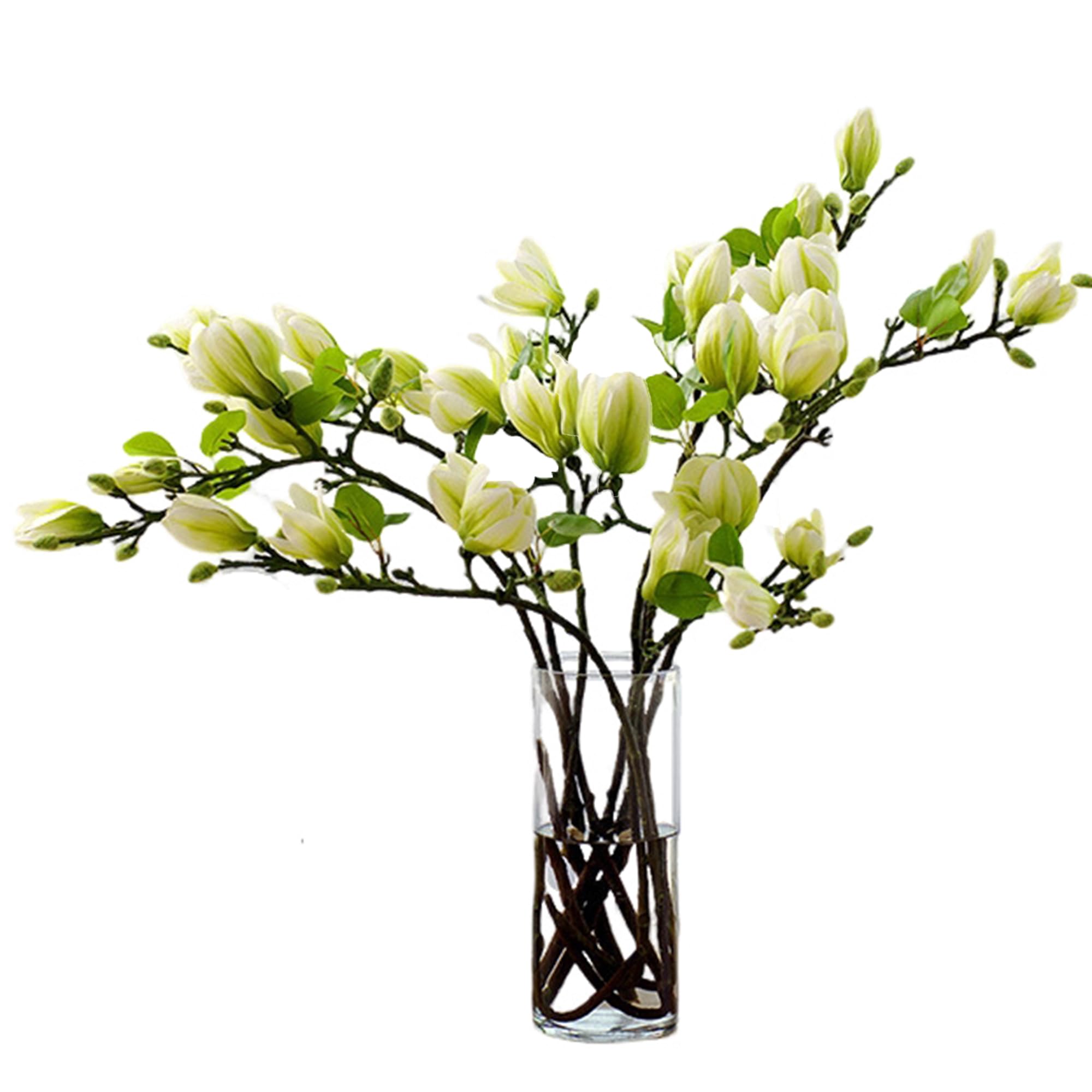 Package included: Artificial magnolia branches 8pcs. Versatile Fake Magnolia Decorations: Our faux magnolia stems offer endless versatility for your home or event decor. Display decorative branches for vases, create floral arrangements, or incorporate them into wreaths and garlands for a unique and elegant touch. Magnolia Flower Artificial Spring Branches: Experience the exquisite charm of magnolia flowers with our artificial half-bloom magnolia branches. Each faux magnolia stem boasts petals that mimic the delicate beauty of real magnolias, adding a touch of sophistication to your decor. Realistic Artificial Magnolia Stems Design & Long-Lasting : Crafted with precision and care, our magnolia branches artificial replicate the natural curves and textures of real magnolia stems. They blend seamlessly into your decor, creating a visually stunning display. Say goodbye to the fleeting beauty of fresh-cut flowers. Our magnolia centerpiece are designed to retain their vibrant colors and realistic appearance for years to come, making them a wise investment for your home decor. FLOWER ARRANGEMENT TIPS: Because each vase size and height is not the same, if you do not have the appropriate cutting pliers to cut the flower rod (in order to keep the magnolia standing, the flower rod craft quality is relatively strong), the bottom of the flower rod can be folded part, hidden in the vase, thus concave you want the shape. So don't get frustrated because the flower poles are too long and you don't have the tools to trim them IF YOU MIND, PLEASE BUY CAREFULLY: Note that there are only four fake magnolia stem on each magnolia branches faux, but more than four stem ends, some have bare stem ends without magnolia flowers petals. This is a deliberately designed state. Because it highly mimics what happens in nature when some flowers die and only the stem ends are left. Bring natural beauty into your home without the fuss of real flowers with these artificial spring branches. Available in a variety of colors and styles, these magnolia branches look just like the real thing from across the room. The soft petals and realistic details make these flowers a great option for displaying year-round. Whether you're looking to add a pop of color to your living room, brighten up an entryway table, or create a beautiful magnolia centerpiece, these artificial floral branches will do the trick. Clean up is easy - just dust them occasionally. They're also low maintenance, as you won't have to worry about watering or replacing them as they wilt. Add a touch of nature to your space without any of the hassle of live flowers. branches size:lenght:26 inches wideth: 6.3inches weight(0.12pound per branches for vases ) : 6pcs 0.72pound 5pcs 0.6pound 3pcs 0.36pound