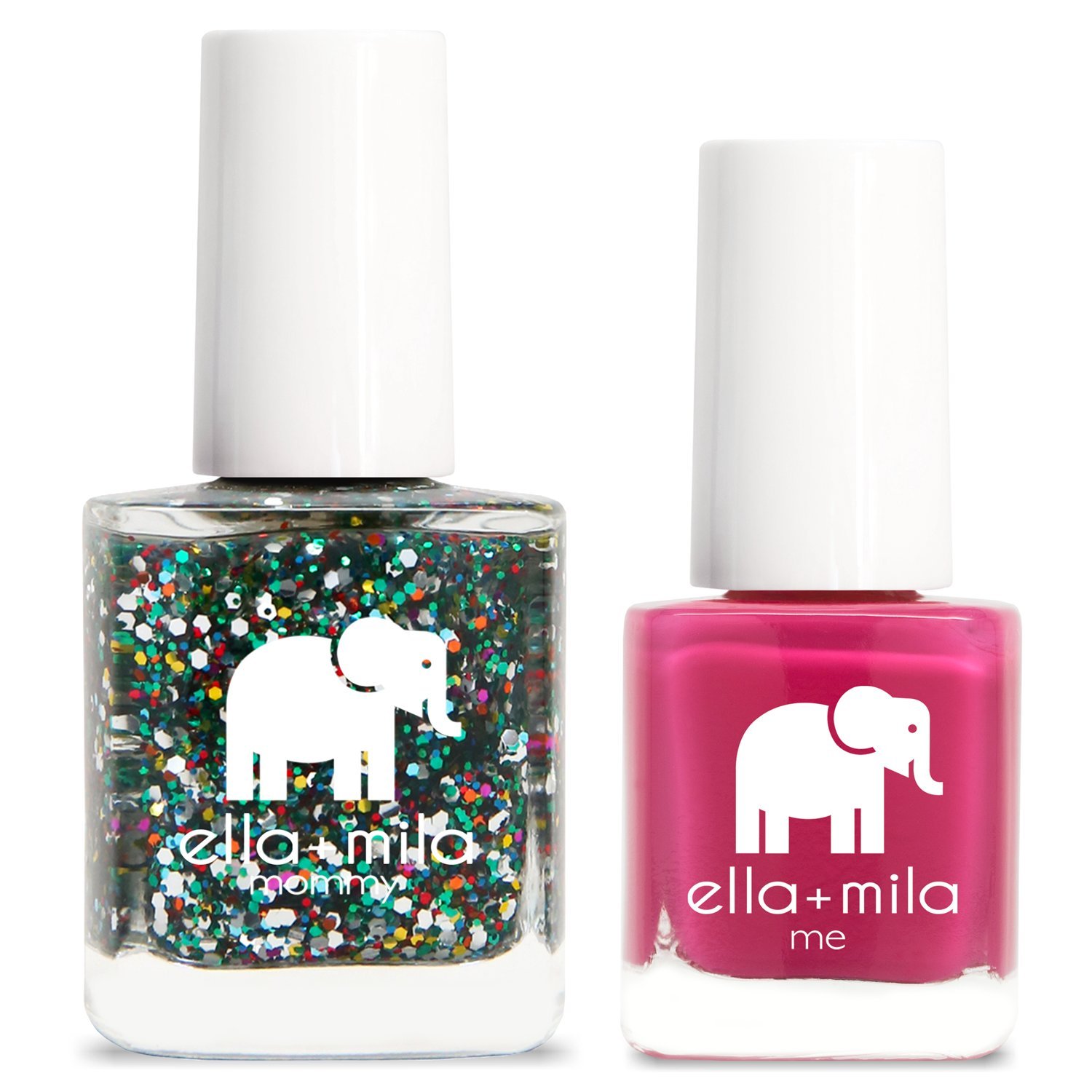 Mommy & Me Nail Polish Set by ella+mila: Get vibrant color with a fast drying nail polish that helps give you gorgeously wholesome nails; Our chip resistant nail polish is ideal for keeping your nails strong & healthy; Long-lasting color & finish gives you instant & stunning results every time Pop of Color: Our quick dry nail polish set features 2 shades that complement each other so you can switch up your style & customize your look; Includes 1 nail decoration sheet to brighten up your nail art; Party In A Bottle is a colorful glitter; Sweet Tart is hot pink for summer Professional-Looking Results: For flawless-looking nails; Simply apply our fast dry nail polish to your nails; Build up as needed; Wait for color to dry in between applications; Follow up with your favorite clear nail polish top coat Polish With Love: Provide the care that your nails truly deserve; Our long lasting nail polish protects your nails by preventing chips & peeling; Vegan & cruelty-free products; Certified by PETA & crafted with love in mind Unique “17-Free” Formula: Made without Acetone, Formaldehyde, Dibutyl Phthalate (DBP) & other harmful chemicals; Rest assured that our cruelty free nail polish is safe to use & planet friendly; ella+mila strives to be environmentally responsible & health conscious You deserve vibrant nail polish that is made without harmful chemicals. "Elite Collection A" by ella+mila is uniquely formulated to be the ideal quick-dry nail polish. We’ve created this product without acetone that could leave your nails dry and damaged. This fingernail polish offers chip-resistant protection to keep the color long lasting. Our vegan nail polishes are made with non-toxic ingredients. Our formula helps keep your nails moisturized and healthy. The perfect nail polish that dries fast and finishes with gloss. Get stunning results every single time you use it. This fingernail polish is perfect for any occasion and event. Simply apply one coat of our polish to your bare nails, let dry and apply additional coats as desired. Makes for the ideal nail polish gift. Get creative with our unique polishes and use different color combinations. Our motto at ella+mila is to polish with love. We want to provide the care that your nails deserve. Our products are fashion-forward without compromise. We stand for vegan and cruelty-free products (Certified by PeTA). Our unique “17-Free” formula is proudly made in the USA. Our products are created without Acetone, Formaldehyde, Dibutyl Phthalate (DBP) and other harmful chemicals. You can polish confidently knowing that our products are safe to use and planet friendly. We strive to be environmentally responsible & health conscious. Contents: 10 - 0.45 fl oz Bottles Instructions: Apply one coat of our polish to bare nails, let dry and apply additional coats as desired.