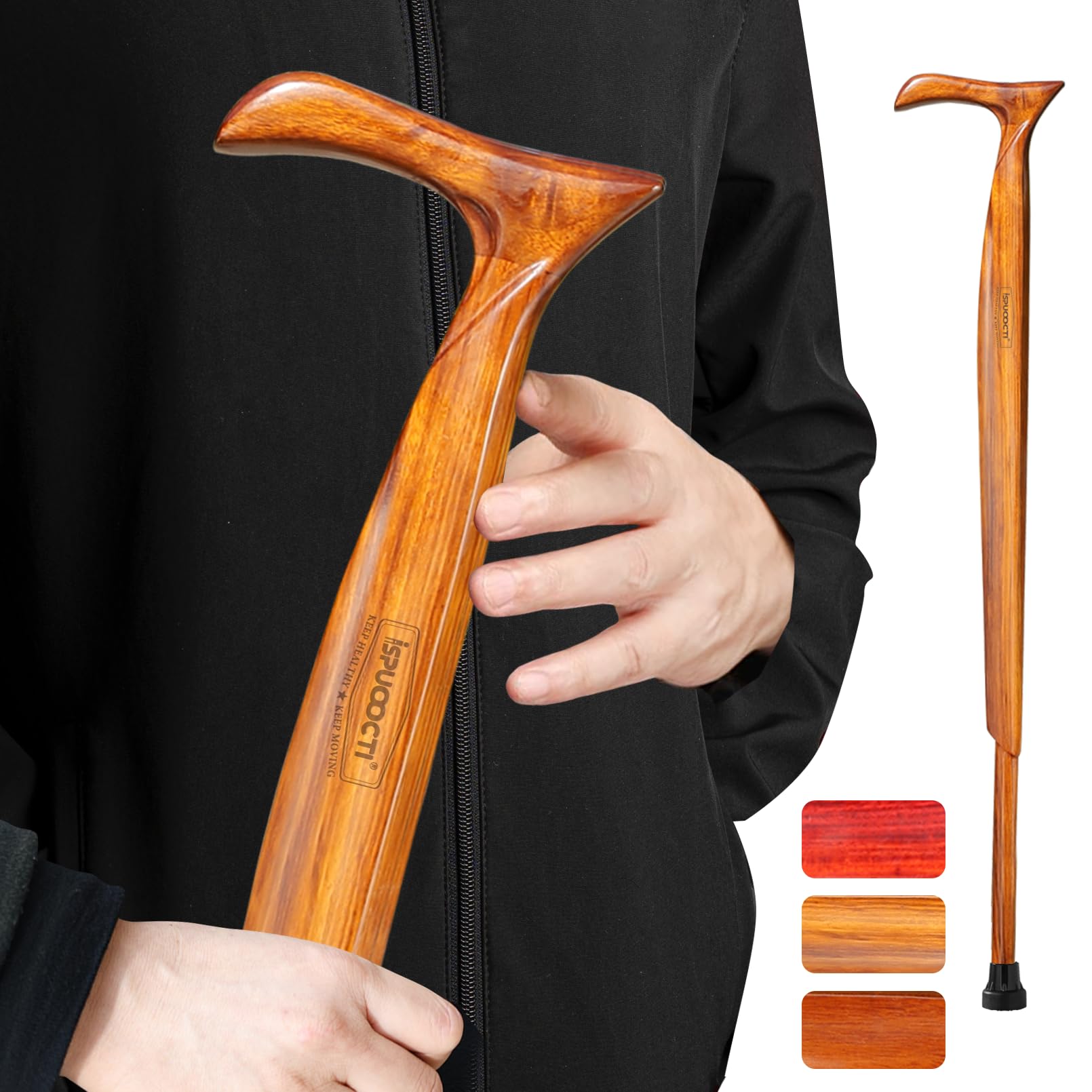 š„ćPrecious wood, enjoyed by noblesćWe carefully select three kinds of precious wood, sandalwood known as the "wood of kings", Zebra wood known as "gold in wood" and Heritiera wood, as raw materials for this walking cane. Its noble material, color, and texture not only reflect your elegance but also your noble identity. Of course, this wooden cane is more suitable as a gift for important people. š„ćA cane that gives you more confidencećWe abandoned the outdated design concepts of traditional wooden walking cane and carried out more than 200 design revisions in 3 years. While satisfying practicality, it integrates stability, beauty, fashion, and safety, when you have it, whether you are shopping, gathering, or walking,I believe it will make you more confident, more fashionable, more outstanding, and look younger. š„ćmortise and tenon craft, more assured canećWe inherit the intangible cultural heritage of tenon and tenon craft. Without using any screws or rivets, perfectly combine the handle with the cane body, which not only ensures the safety, comfort, stability, and wear resistance of the walking stick but also increases the load-bearing capacity to 500lbs above, compared with those ordinary wood walking cane, the use time is longer, so you can use it more at ease. š„ćNo painting, healthier walking canesćWe promise that this walking cane for men and women will not be painted or colored, and only uses high costs natural wood wax oil as the coating. Compared with those bad spray-painted canes, you can fully feel While enjoying the healthy and wonderful touch of natural wood, there is no need to worry about paint peeling, fading, cracking, and other issues. It is a canes for seniors that really suitable for long-term use. š„ćHeight adjustable canećOur canes for men and women is 36.6" long, you can cut it to the size you need according to our instructions below. You can also contact us to customize the suitable walking sticks size for you. š„ćWith 3 non-slip cane tipsćYou don't need to worry about the wear and tear of the cane tips. We provide 3 high-quality non-slip and wear-resistant tips for each walking cane, which are easy to replace and save you from the trouble of buying cane tips. They are suitable for you for a long time use. How to Get the Right Cane for Your Height
