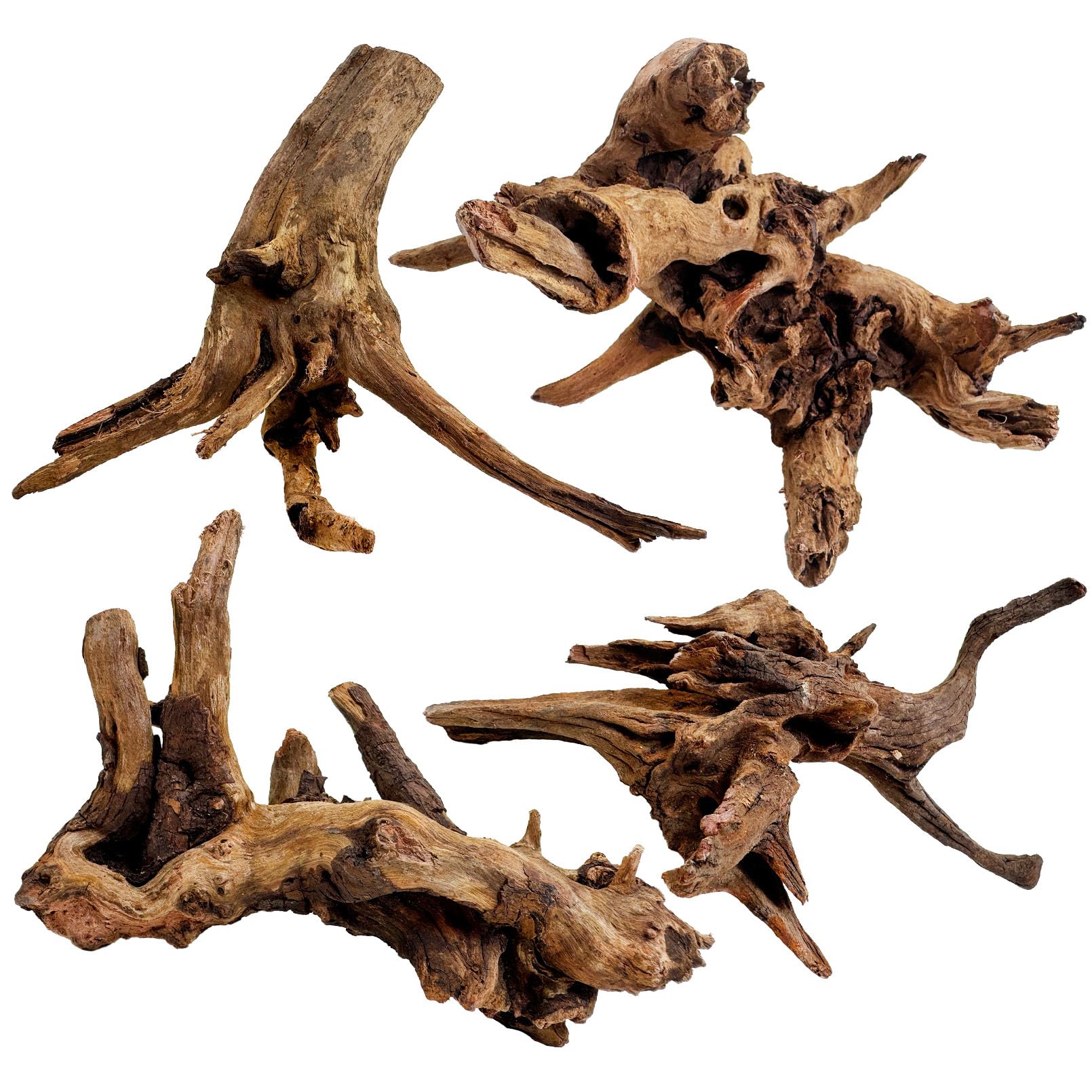 [NATURAL DRIFTWOOD MATERIAL] Our driftwood for aquarium is made of high quality wood, which is strong and durable enough to last under water or in dry conditions. The natural wood adds realism and the unique shape adds aesthetic value to the aquarium. It makes perfect decoration and is also ideal for reptiles to climb on, adding natural beauty to your aquarium or glass container [NATURAL DRIFTWOOD] Each piece of mopani wood has its own unique shape and is one of a kind. The pictures show just some of the driftwood and what you get may be different from what the pictures show. Different shapes of natural driftwood have their own natural beauty and are suitable for decorating various landscapes [MULTI FUNCTION] Each piece of aquarium driftwood measures 5.5- 9.5 inches in length and is carefully hand-selected. Aquarium drift wood can be used not only for moss trees in aquariums, but also as an aquascape for home gardens, perfect for decorations and reptiles. Such as fighting fish, snails, turtles, crab tanks, ball pythons, spiders, bearded dragons, lizards, geckos, snake tanks, frogs and more [GREAT DECORATION] Natural driftwood for aquarium will soon become the focus of your aquarium. I believe you must love the natural habitat it helps create for your fish.When driftwood is put in the tank, it also releases tannins that help soften the hard water and lower the pH.Very useful for many varieties of fish [PERFECT ADDITION FOR AQUARIUMS] Its unique shape will catch your fish's attention. Small animals such as nocturnal fish, ghost shrimp, and smaller fish use it as a driftwood refuge. Large fish and hermit crabs sometimes chew driftwood or eat microorganisms that grow on the wood Aquarium Driftwood Decoration