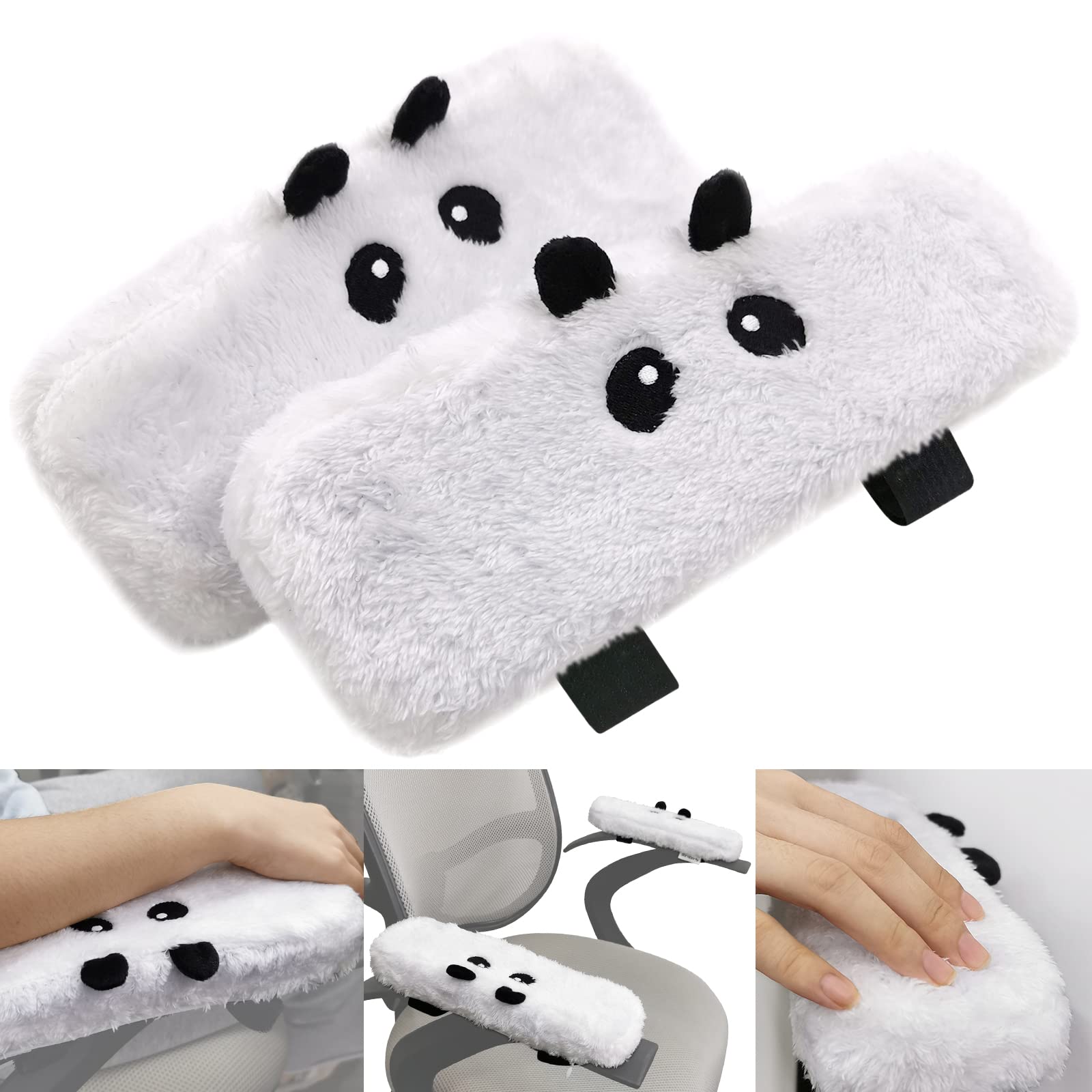 【 Fluffy Touch as Panda 】-The chair armrest pad adopts cute panda pattern, designs with fluffy material, which touch feel like furry panda. The furry touch can release your stress at work, and bring you a short break 【 Support Elbow with Memory Foam 】-The armrest pad adopts high quality memory foam in high density, which is light blue-not easy turn yellow. Adding 3cm height to the armrest on the chair and support your elbow well-Ergonomic to relax your shoulders 【 Velcro Strap & Anti-slip Backing 】-The ergonomic arm pillow adopts velcro strap to fix the armrest pad, and anti-slip spots backing helps stay in place. Easy to install and non-slip for long time using 【 Easy to Clean 】-The cute chair arm rest cover is detachable with invisible zipper. The cover can be easily removed with invisible zipper, then throw to washer and dryer 【 Fits Most Chairs 】-The panda chair arm pad measures 9.8 (L) x 3.1(W) x 1.2 (H) inches, fits most home, office and gaming chairs. And the velcro strap the armrest cushion is extra long for you to apply on variety chair arm- you can cut as you need Package Includes: 2 x panda armrest pad