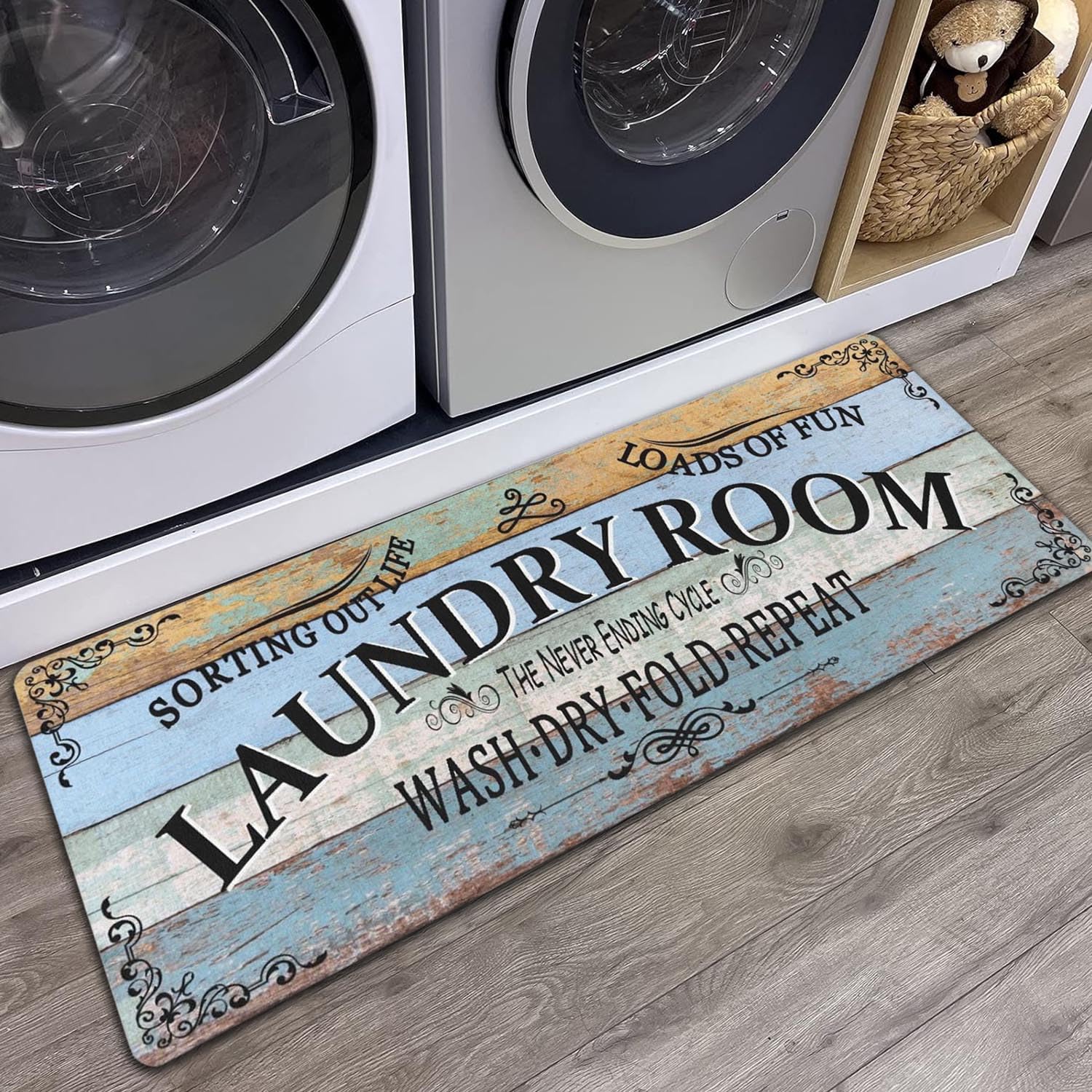Farmhouse Style Laundry Room Rug: This long laundry room rug with rubber backing has a stylish and rustic look, perfect for covering the washer and dryer area of your laundry room. This farmhouse style laundry room rug strip has a beautiful look and will add a touch of elegance to other areas of your home besides the kitchen or laundry room. Anti-Fatigue Laundry Room Rug: This long laundry room rug measures 20" x 48" and is made of diatom mud and covered with 5mm thick high-density rubber foam, which is very comfortable to walk on bare feet and can also cushion long periods of standing in front of the washer and dryer. The 5mm thick rubber foam strip provides comfortable support and is very soft when standing, and the low-profile design makes it perfect for placing under doors. Laundry Room Decor: Our laundry room rugs have unique vintage designs and rich color schemes. These laundry mats will add a touch of brilliance to your laundry room with bright colors and fun sayings. Non-Slip Laundry Rug: The non-slip rubber backing helps the rug stay firmly in place without wearing down the floor, providing safety protection for your family and pets. You can stand on it without worrying about slipping. Easy to clean: You can rinse the laundry rug with a damp cloth or hose. It can also be used for daily cleaning, such as using a broom, wet sponge, sweeping robot, and vacuum cleaner. It is easy to wipe even if something is spilled, and it is also very convenient to sweep or vacuum. After testing, the pattern on the surface of the rug will not fall off after wiping with stainless steel. Wide range of uses: This non-slip rug is comfortable and durable, and it matches towels and other laundry room decorations and accessories perfectly. This rug is perfect for laying the floor in front of the kitchen sink, the floor in front of the washer or dryer in the laundry room, the doorway, hallway, toilet, bathroom floor next to the bathtub, and garage. Farmhouse Style Laundry Room Rug: This long laundry room rug with rubber backing has a stylish and rustic look, perfect for covering the washer and dryer area of your laundry room. This farmhouse style laundry room rug strip has a beautiful look and will add a touch of elegance to other areas of your home besides the kitchen or laundry room. Anti-Fatigue Laundry Room Rug: This long laundry room rug measures 20" x 48" and is made of diatom mud and covered with 5mm thick high-density rubber foam, which is very comfortable to walk on bare feet and can also cushion long periods of standing in front of the washer and dryer. The 5mm thick rubber foam strip provides comfortable support and is very soft when standing, and the low-profile design makes it perfect for placing under doors. Laundry Room Decor: Our laundry room rugs have unique vintage designs and rich color schemes. These laundry mats will add a touch of brilliance to your laundry room with bright colors and fun sayings. Non-Slip Laundry Rug: The non-slip rubber backing helps the rug stay firmly in place without wearing down the floor, providing safety protection for your family and pets. You can stand on it without worrying about slipping. Easy to clean: You can rinse the laundry rug with a damp cloth or hose. It can also be used for daily cleaning, such as using a broom, wet sponge, sweeping robot, and vacuum cleaner. It is easy to wipe even if something is spilled, and it is also very convenient to sweep or vacuum. After testing, the pattern on the surface of the rug will not fall off after wiping with stainless steel. Wide range of uses: This non-slip rug is comfortable and durable, and it matches towels and other laundry room decorations and accessories perfectly. This rug is perfect for laying the floor in front of the kitchen sink, the floor in front of the washer or dryer in the laundry room, the doorway, hallway, toilet, bathroom floor next to the bathtub, and garage.