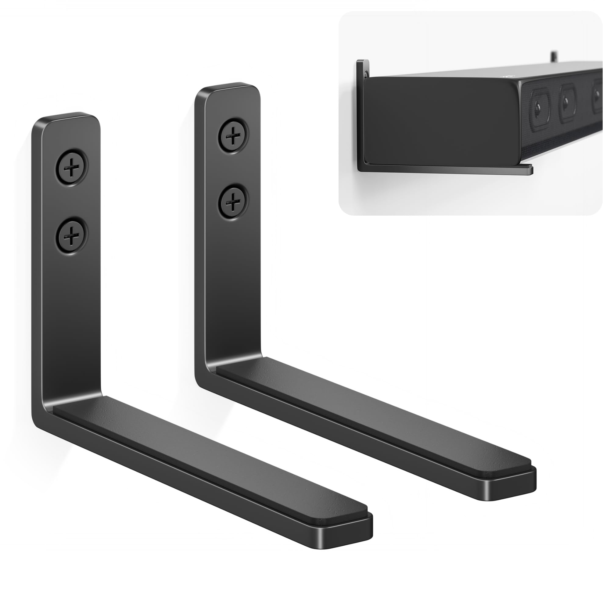 ๐๐ป๐๐ถ-๐๐น๐ถ๐ฝ & ๐๐๐ฟ๐ฎ๐ฏ๐น๐ฒ: Keep your sound bar safe and sound. Our sound bar mounting brackets under TV come with non-slip silicone pads. No more sound bar surprises. Handle up to 20 lbs and 5 inches wide? No problem ๐ช๐ถ๐ฑ๐ฒ ๐๐ผ๐บ๐ฝ๐ฎ๐๐ถ๐ฏ๐ถ๐น๐ถ๐๐: Fits most sound bars and holds them tight. Perfect Dolby Atmos support, designed for Samsung, Sony, LG, Vizio, Bose, Saiyin, TCL, Sonos, Polk Audio, Roku, JBL, Hisense, Harman Kardon, Denon, Rca, Nakamichi, Klipsch, Insignia, Majority, Panasonic and so on ๐ฆ๐น๐ฒ๐ฒ๐ธ, ๐ฆ๐ถ๐บ๐ฝ๐น๐ฒ, ๐ฆ๐๐๐ป๐ป๐ถ๐ป๐ด: Elevate your entertainment. It's a perfect complement to your sound bar. Our soundbar wall mount bracket is a work of art that enhances your home theater ๐๐ฎ๐๐ ๐๐ผ ๐๐ป๐๐๐ฎ๐น๐น: Our soundbar shelf comes with everything you need for a quick and easy installation. Mount it and forget it. Install in a snap, leaving you with a cleaner, more stylish home theater ๐ก๐ผ๐ป-๐ฆ๐น๐ถ๐ฝ ๐ฃ๐ฎ๐ฑ๐: Upgrade your setup with our non-slip soundbar stand. Our soft silicone pads keep your soundbar securely in place without damaging your equipment. Enjoy your movie nights with family and friends